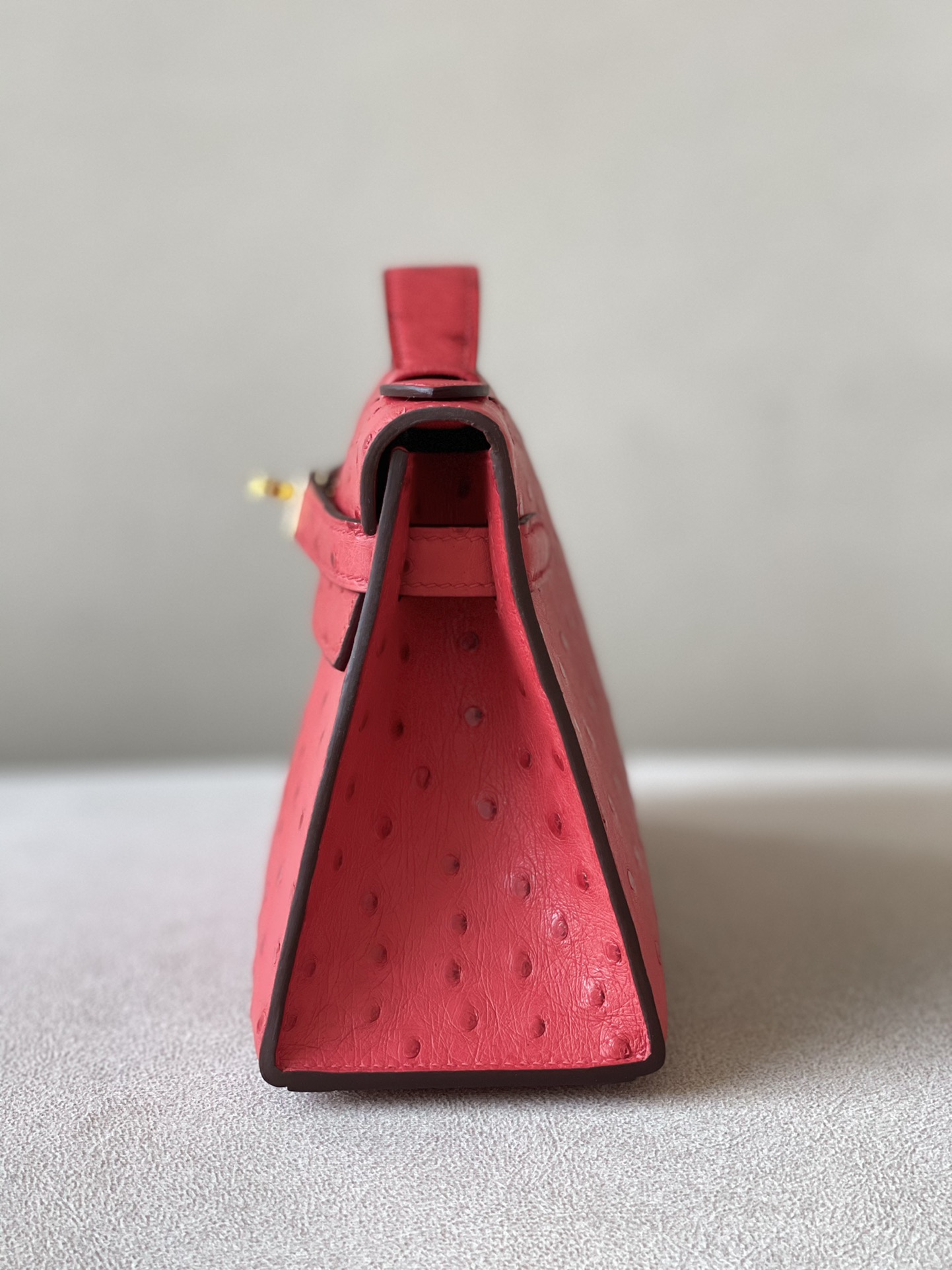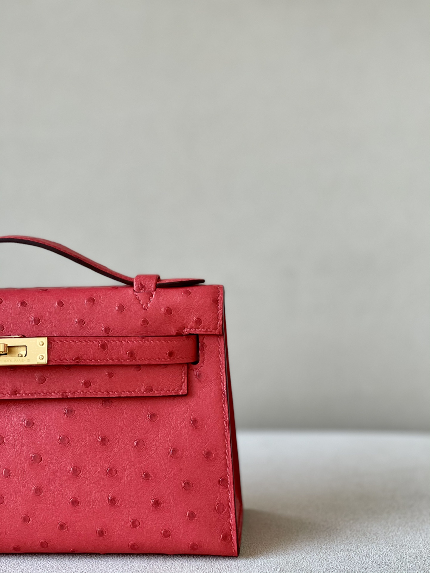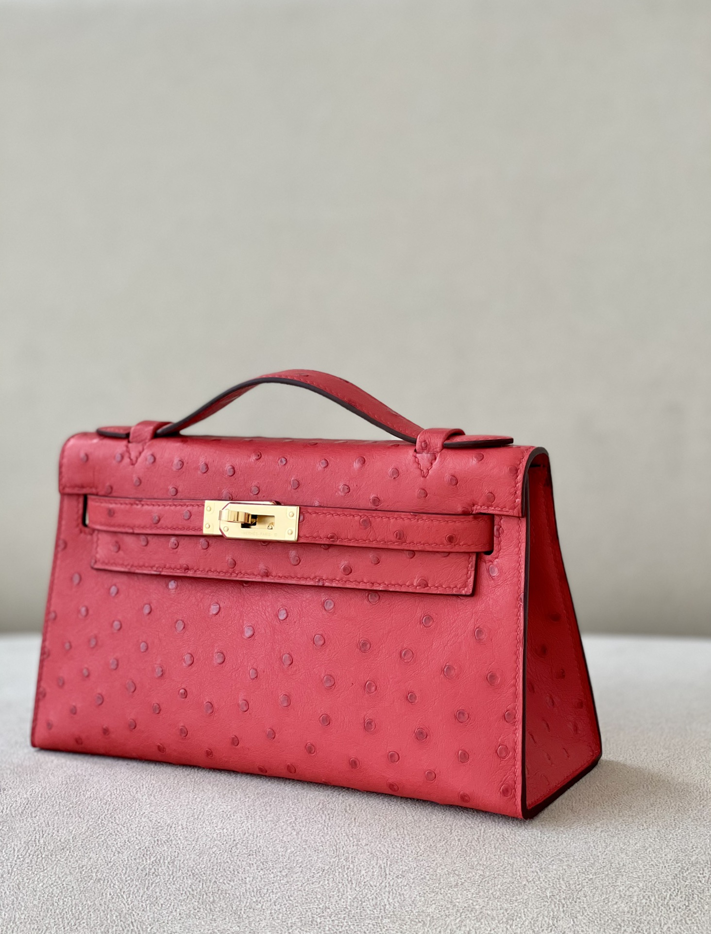 Kelly Pochette Ostrich Gris Agate (82) Palladium Hardware