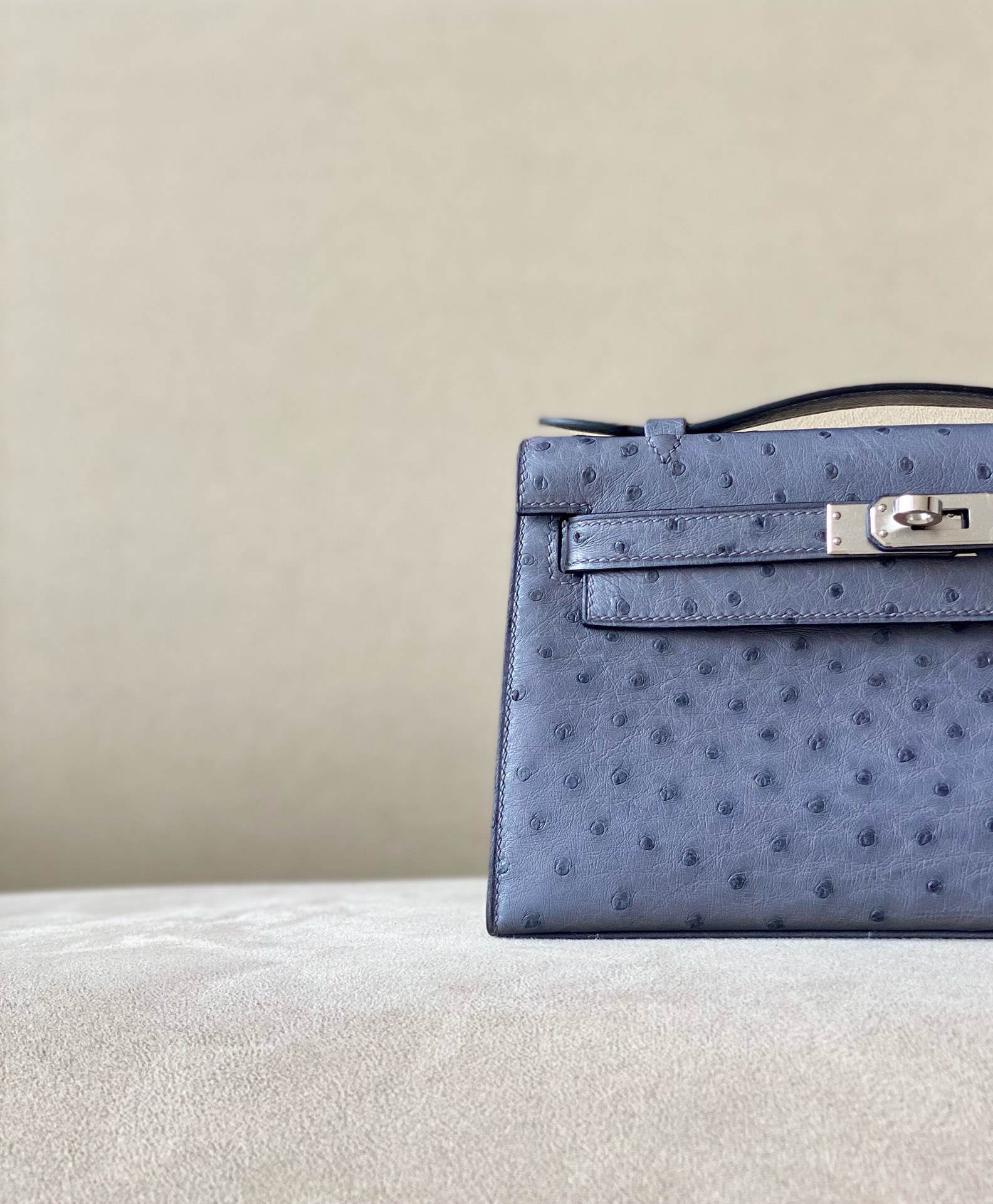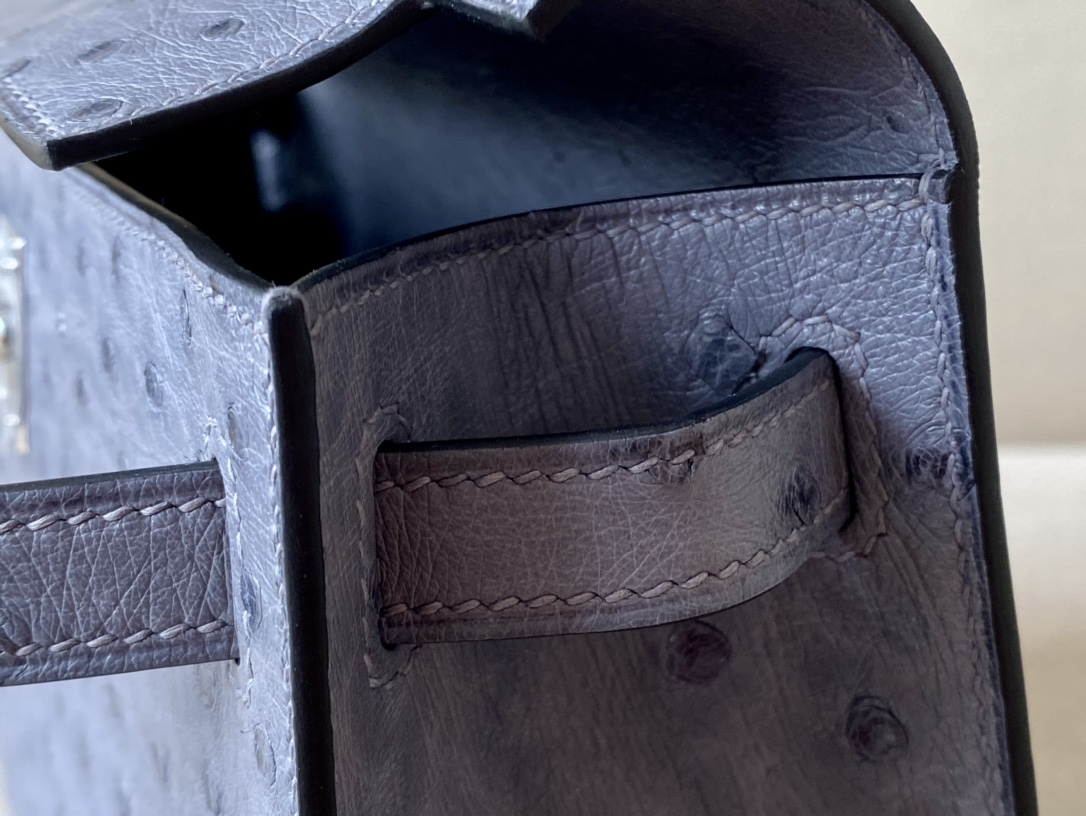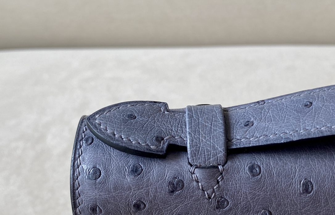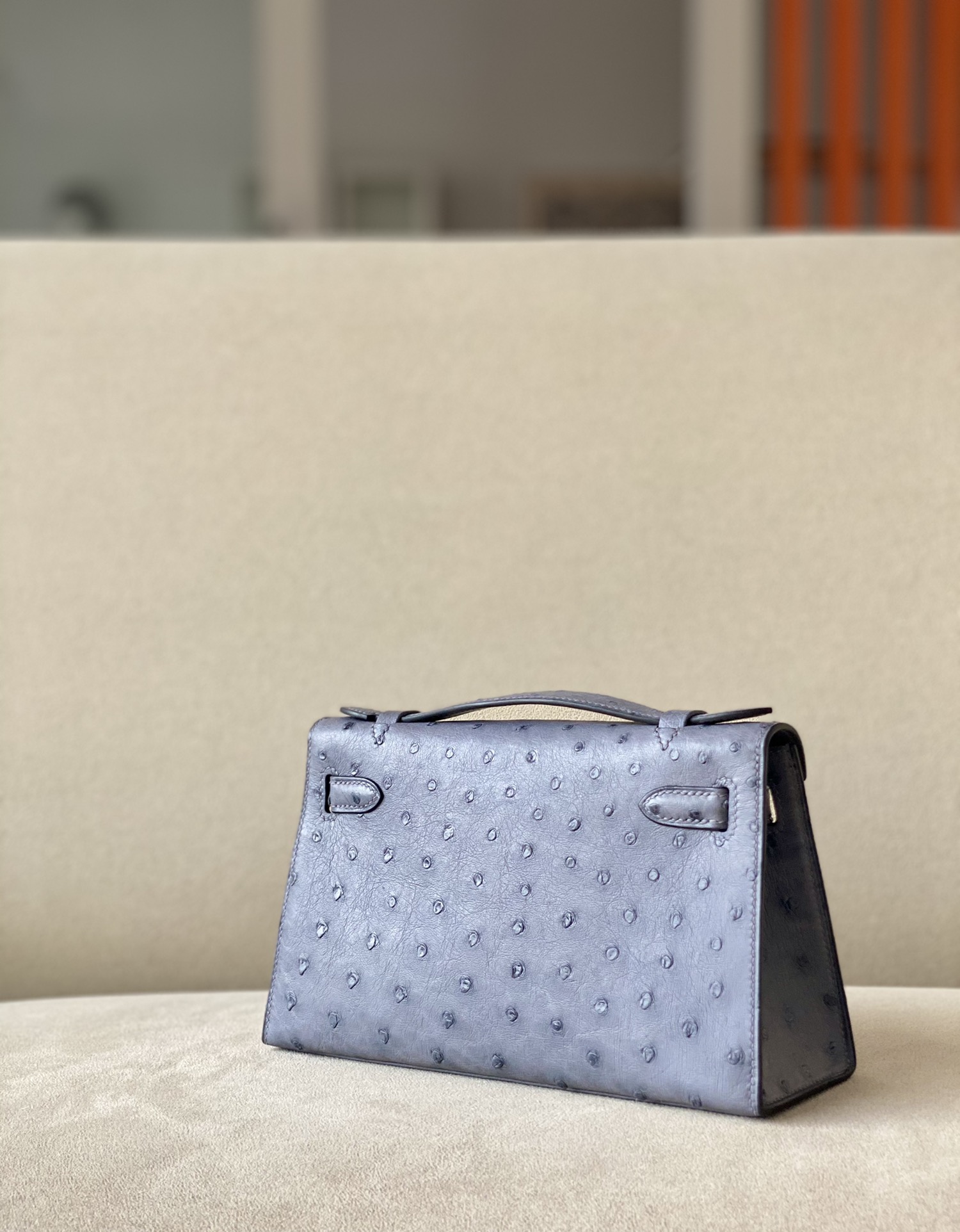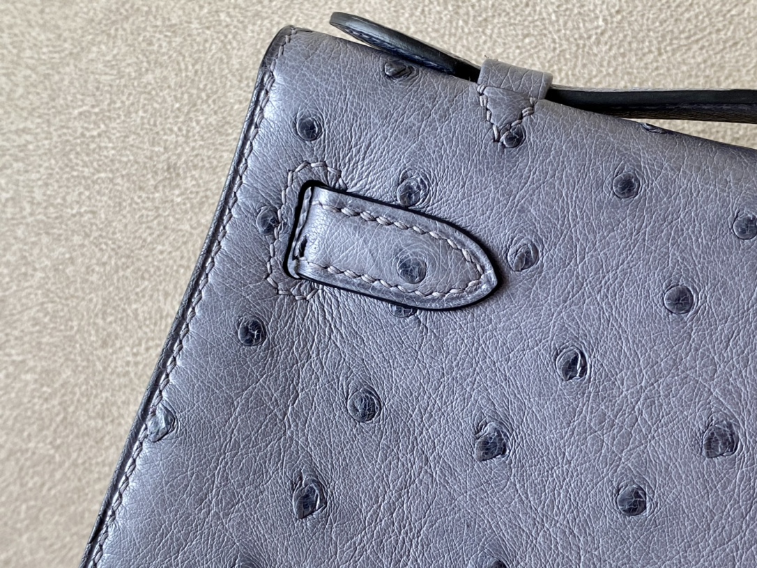 Kelly Pochette Ostrich Gris Agate (82) Gold Hardware