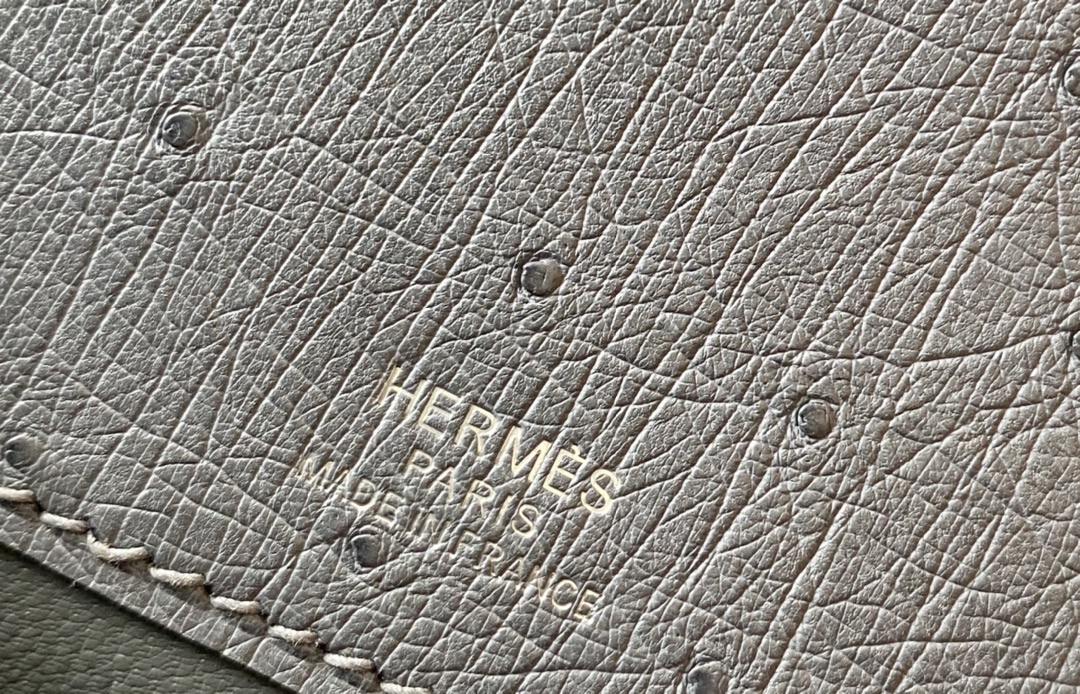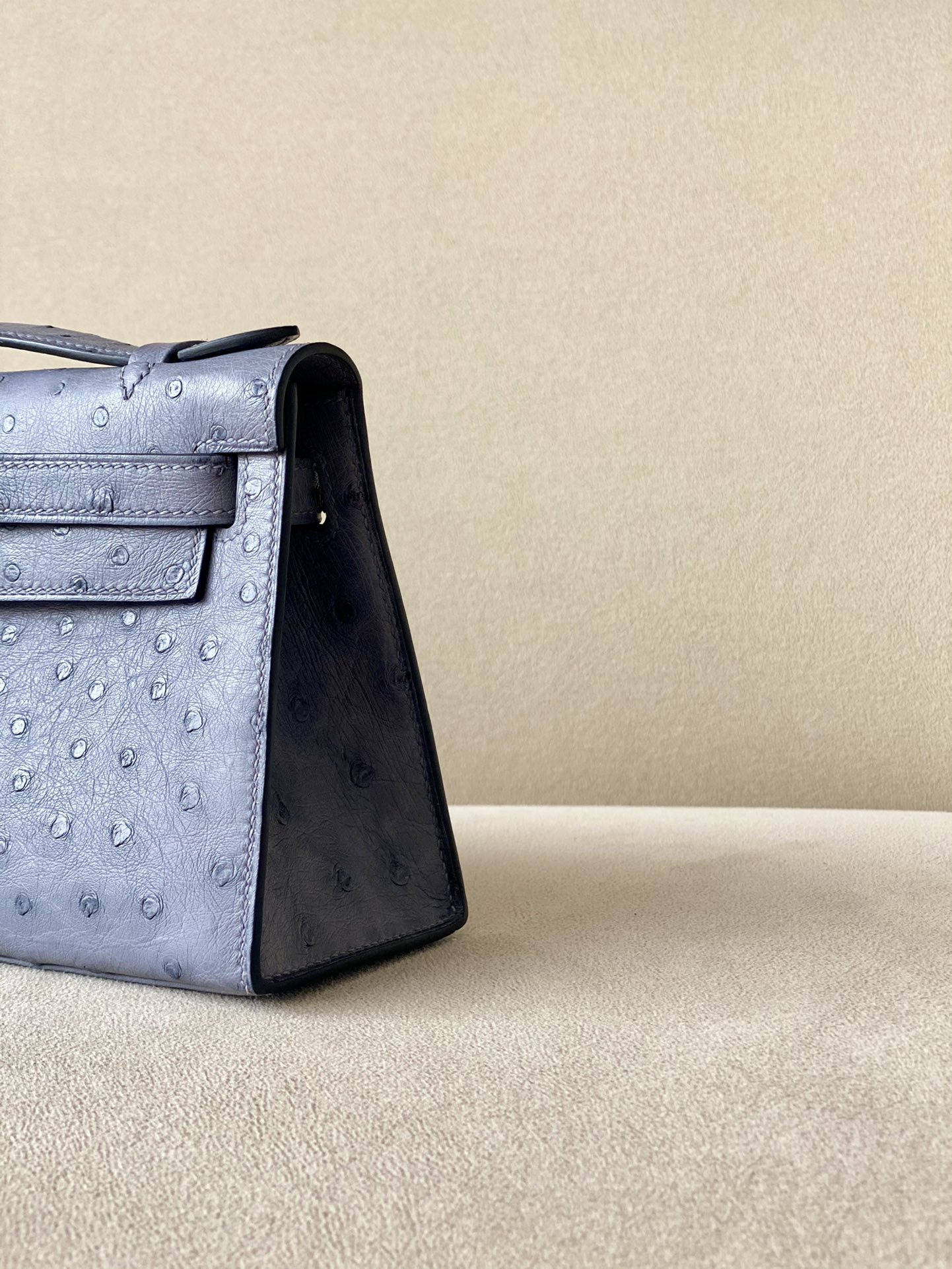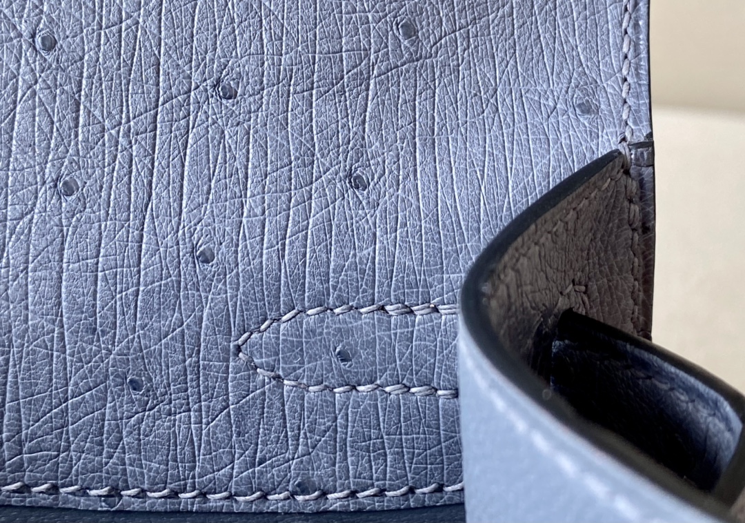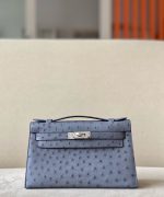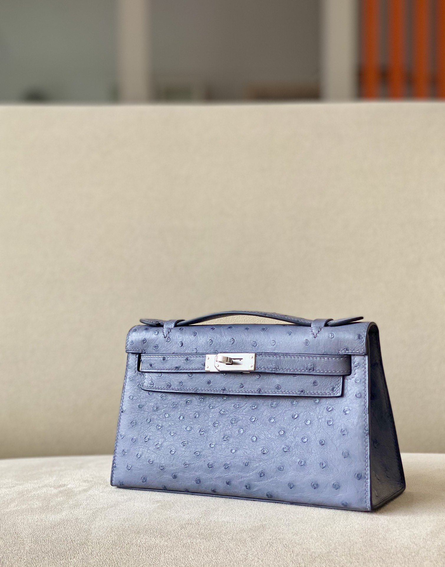 Kelly Pochette Ostrich Gris Agate (82) Gold Hardware