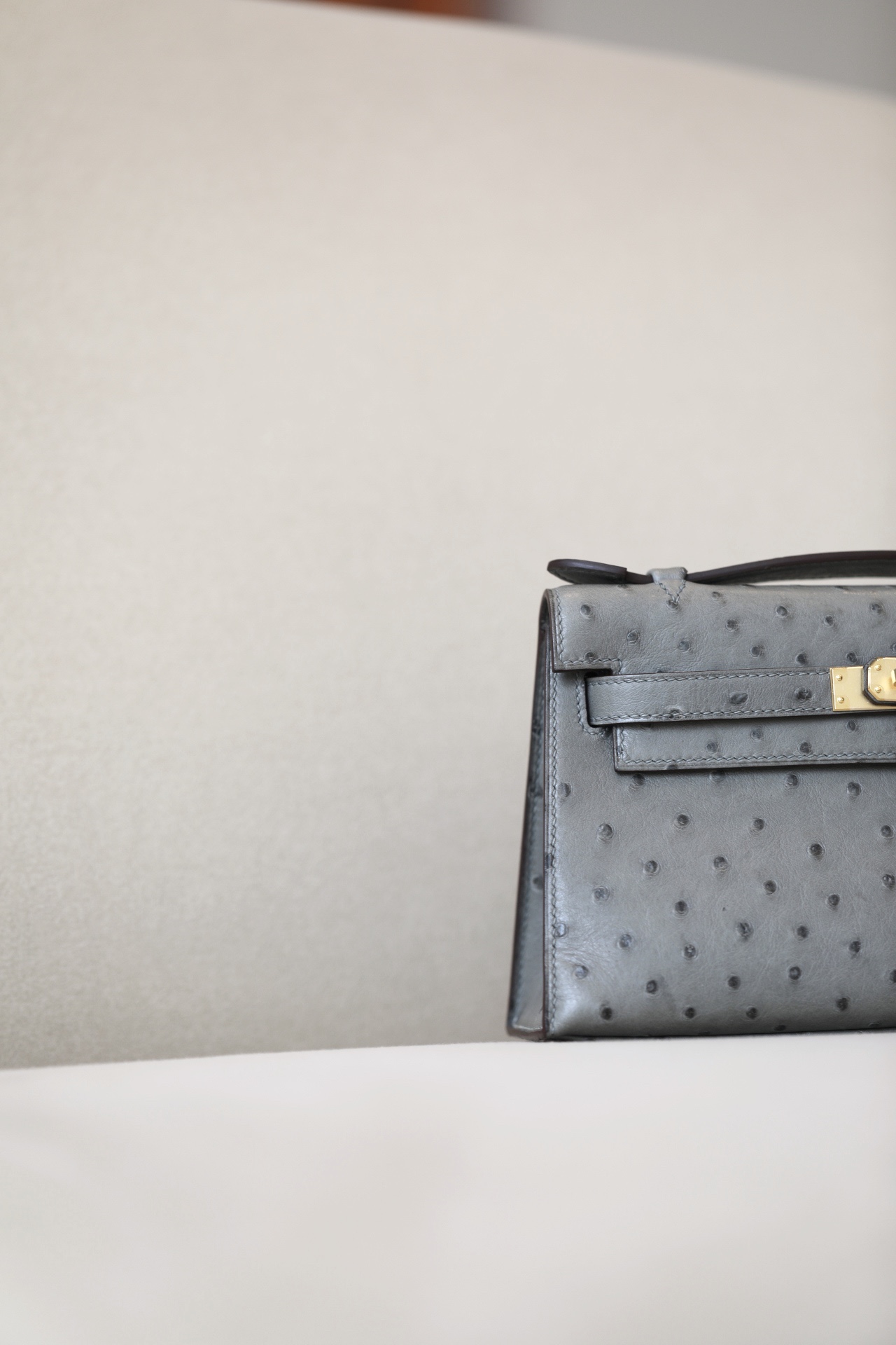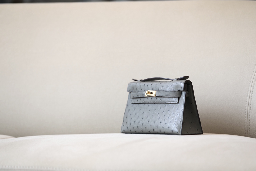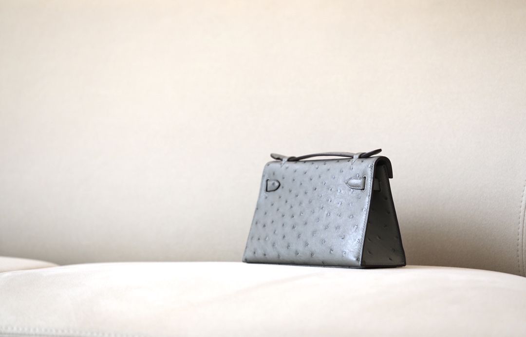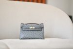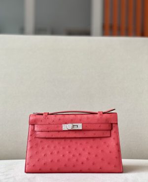 Kelly Pochette Ostrich Braise (95) Palladium Hardware
