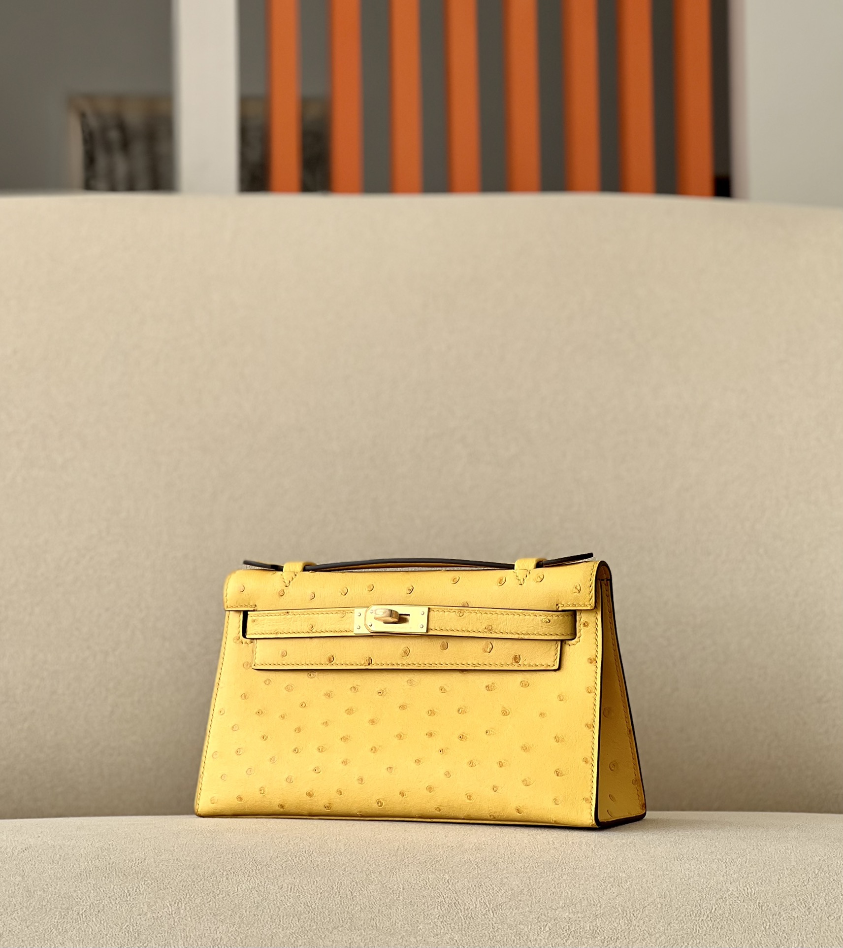 Kelly Pochette Ostrich Nior (89) Gold Hardware
