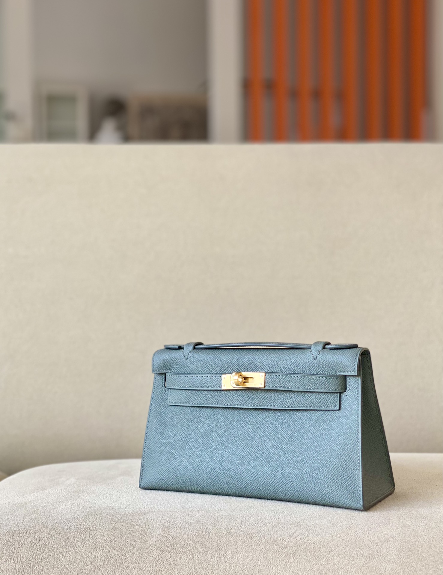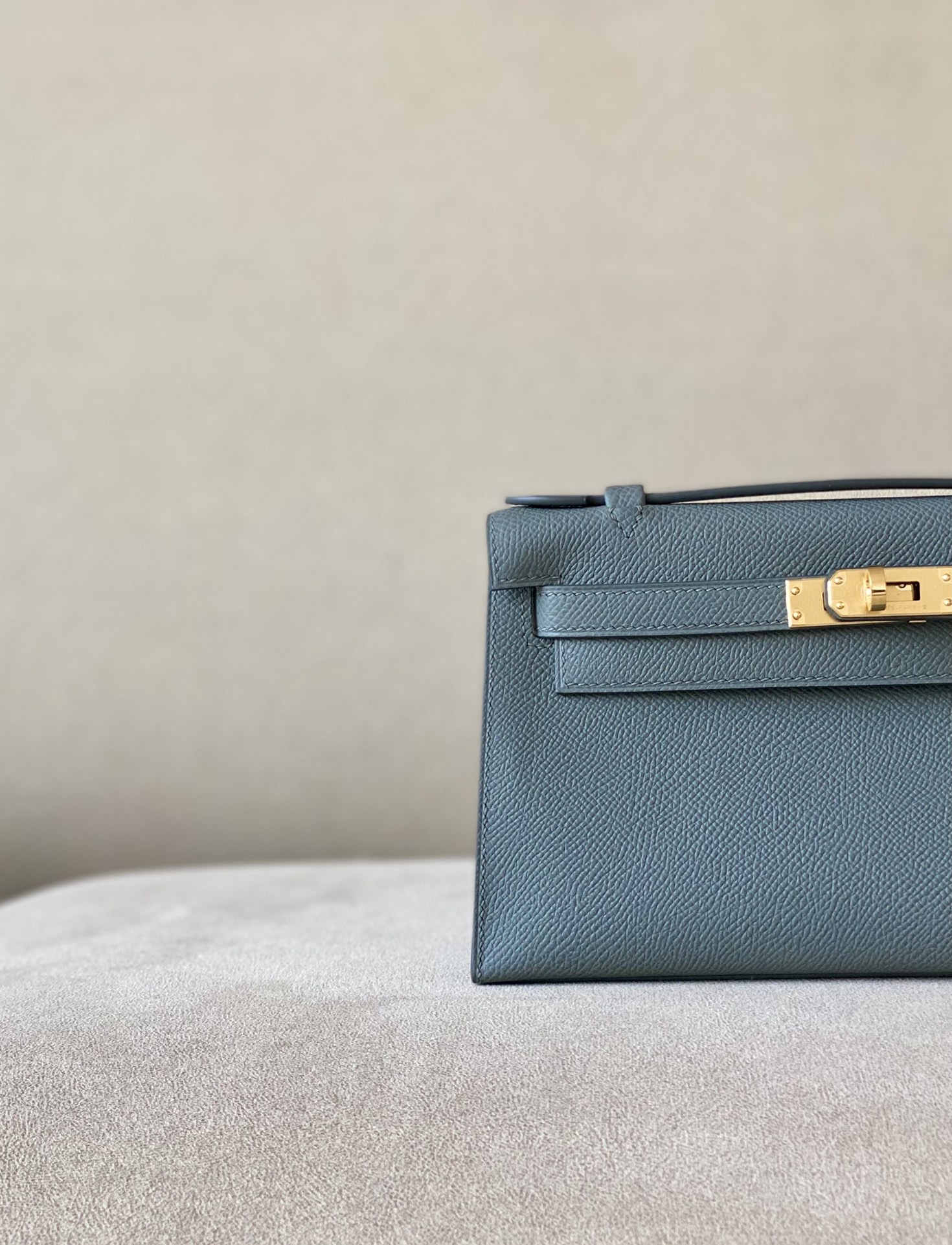Kelly Pochette Epsom Etain (8F) Gold Hardware