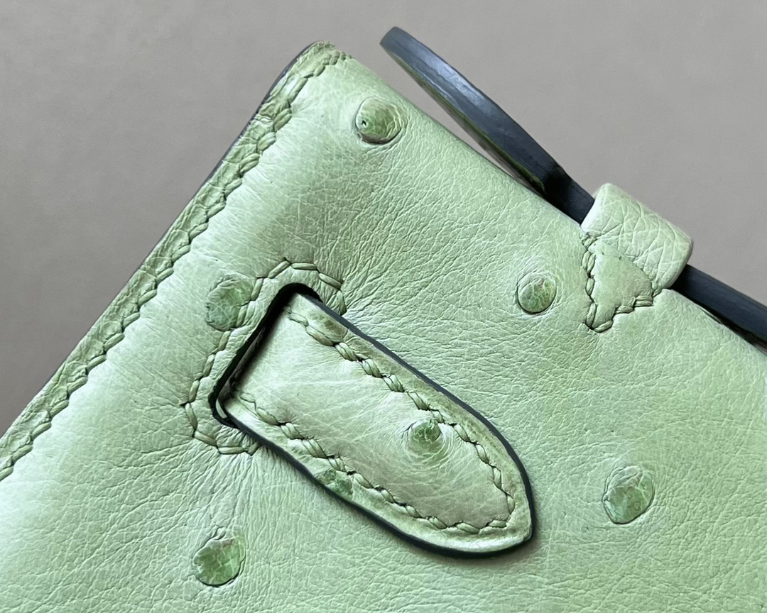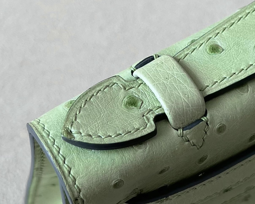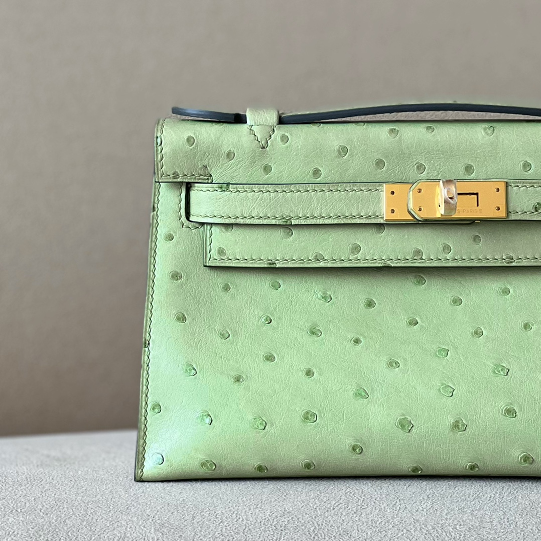 Kelly Pochette Ostrich Vert Vertigo (U4) Gold Hardware