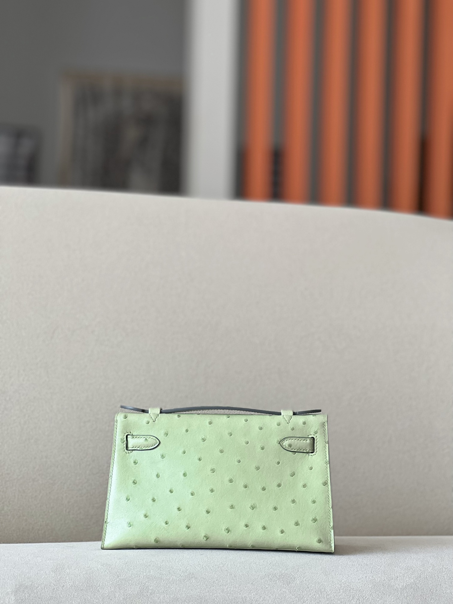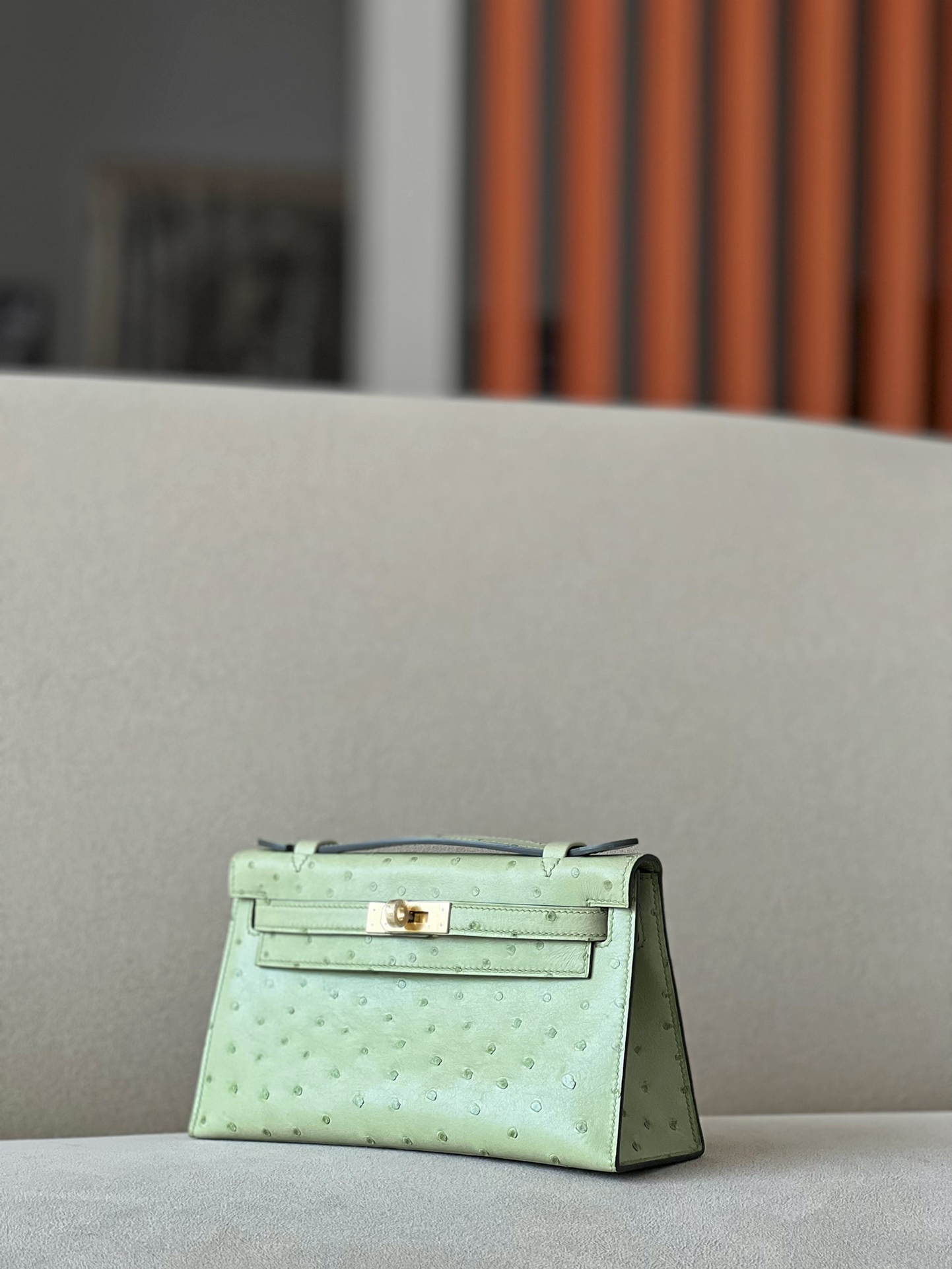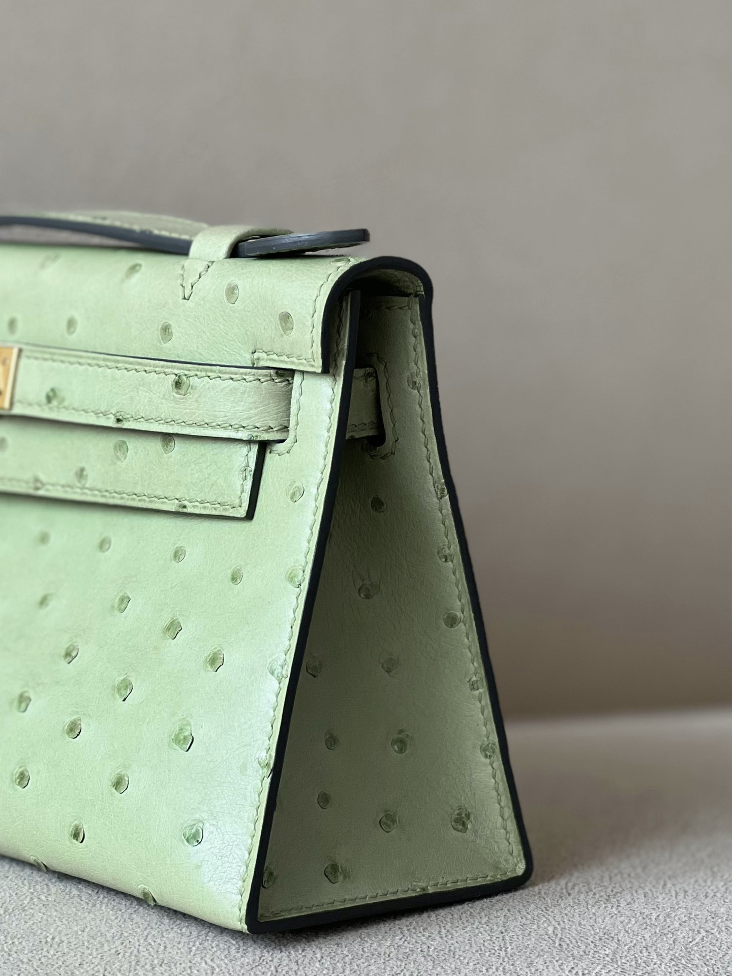Kelly Pochette Ostrich Vert Vertigo (U4) Gold Hardware