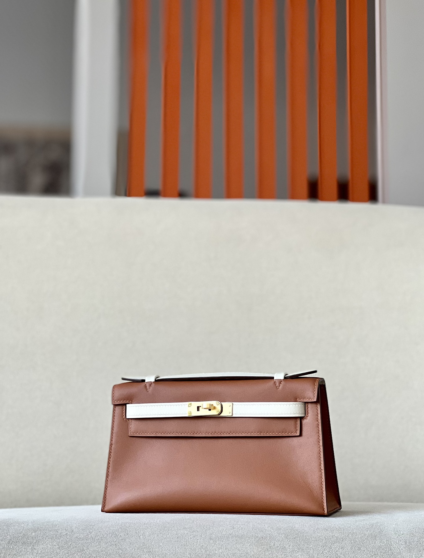 Kelly Pochette HSS Swift Jaune Amber(9D) And Craie(10)Palladium Hardware