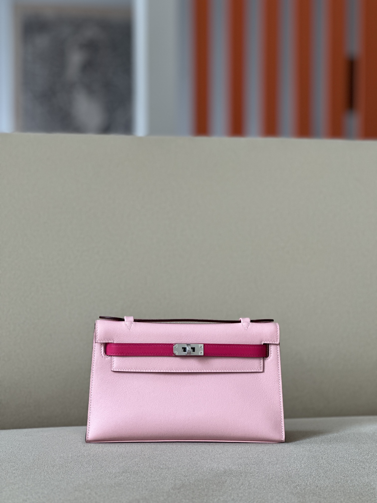 Kelly Pochette HSS Swift Beton(8L) And Rose Sakura(3Q)Palladium Hardware