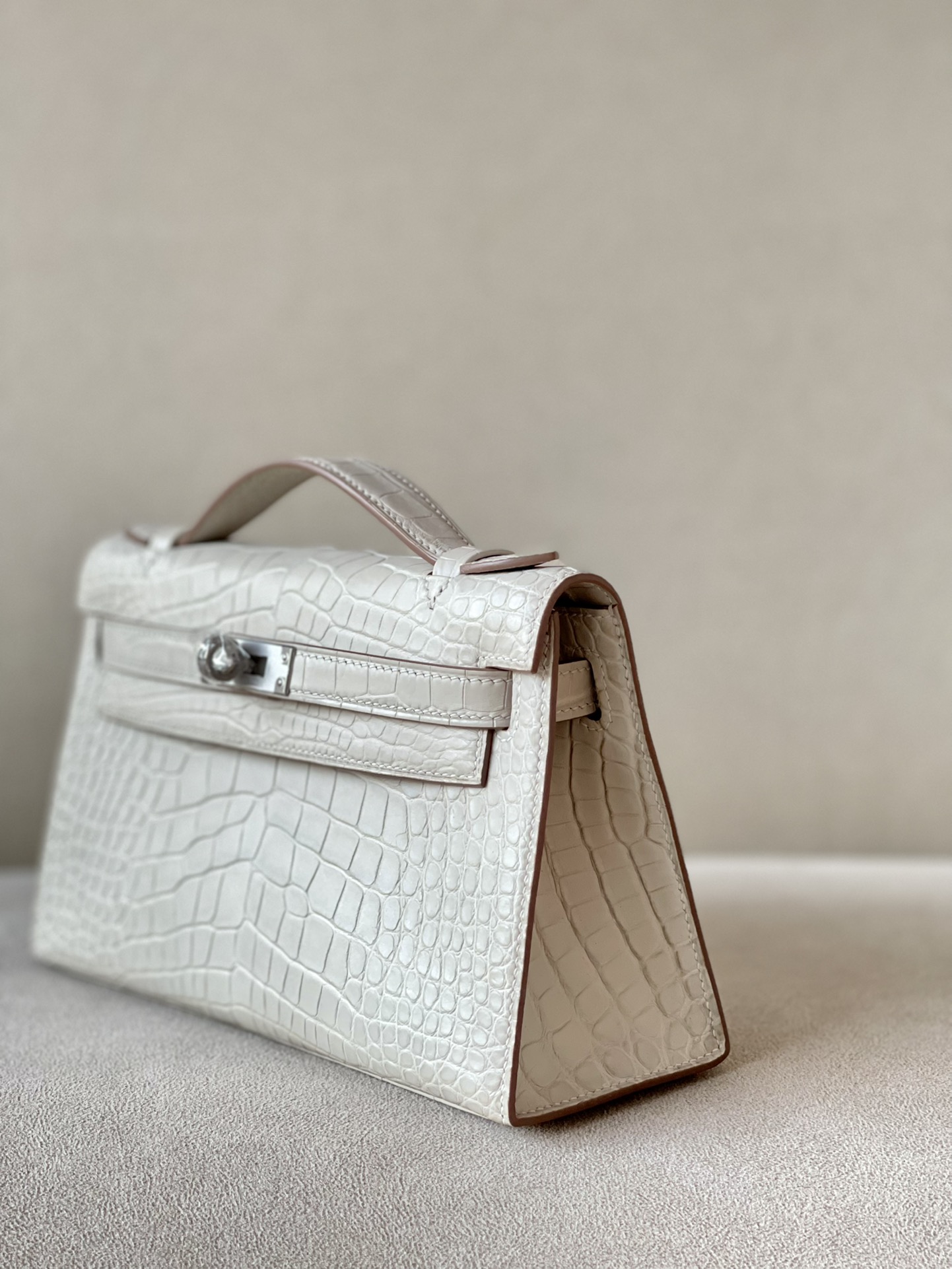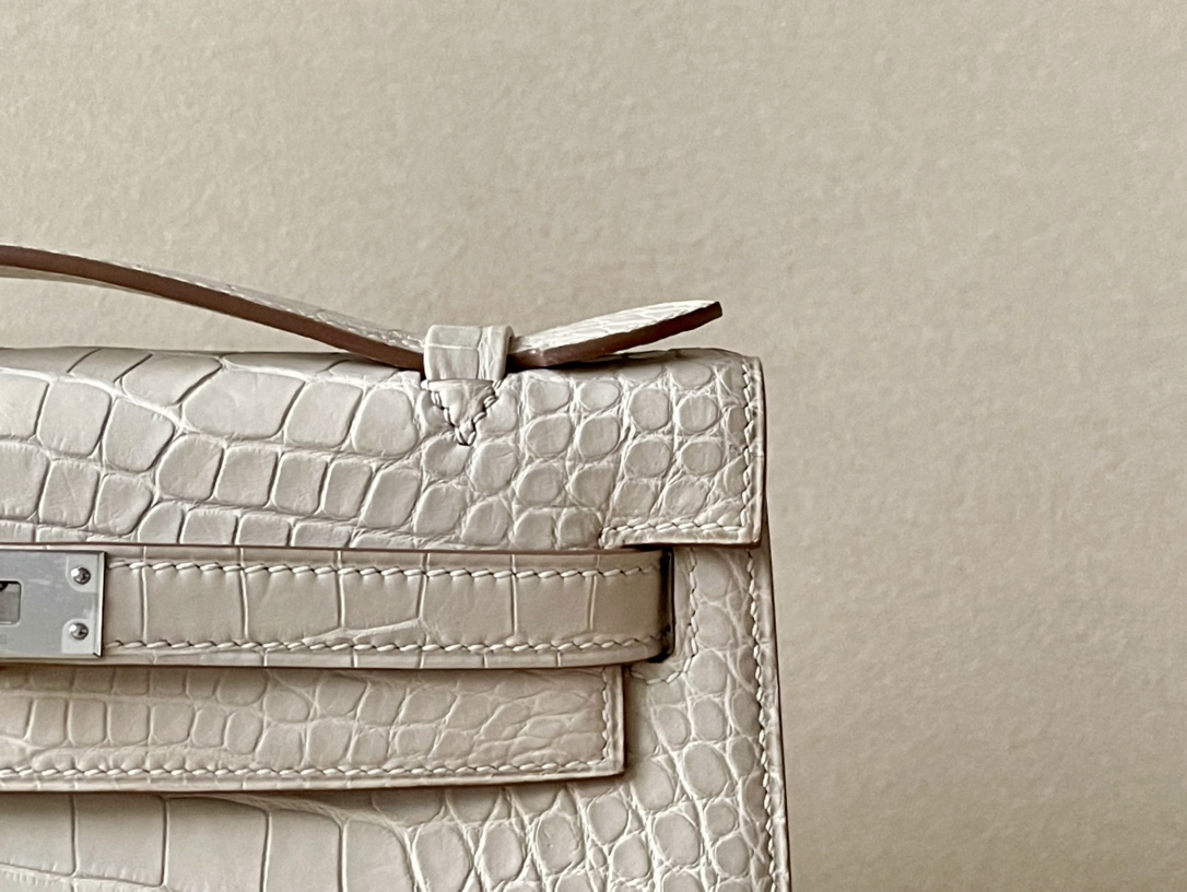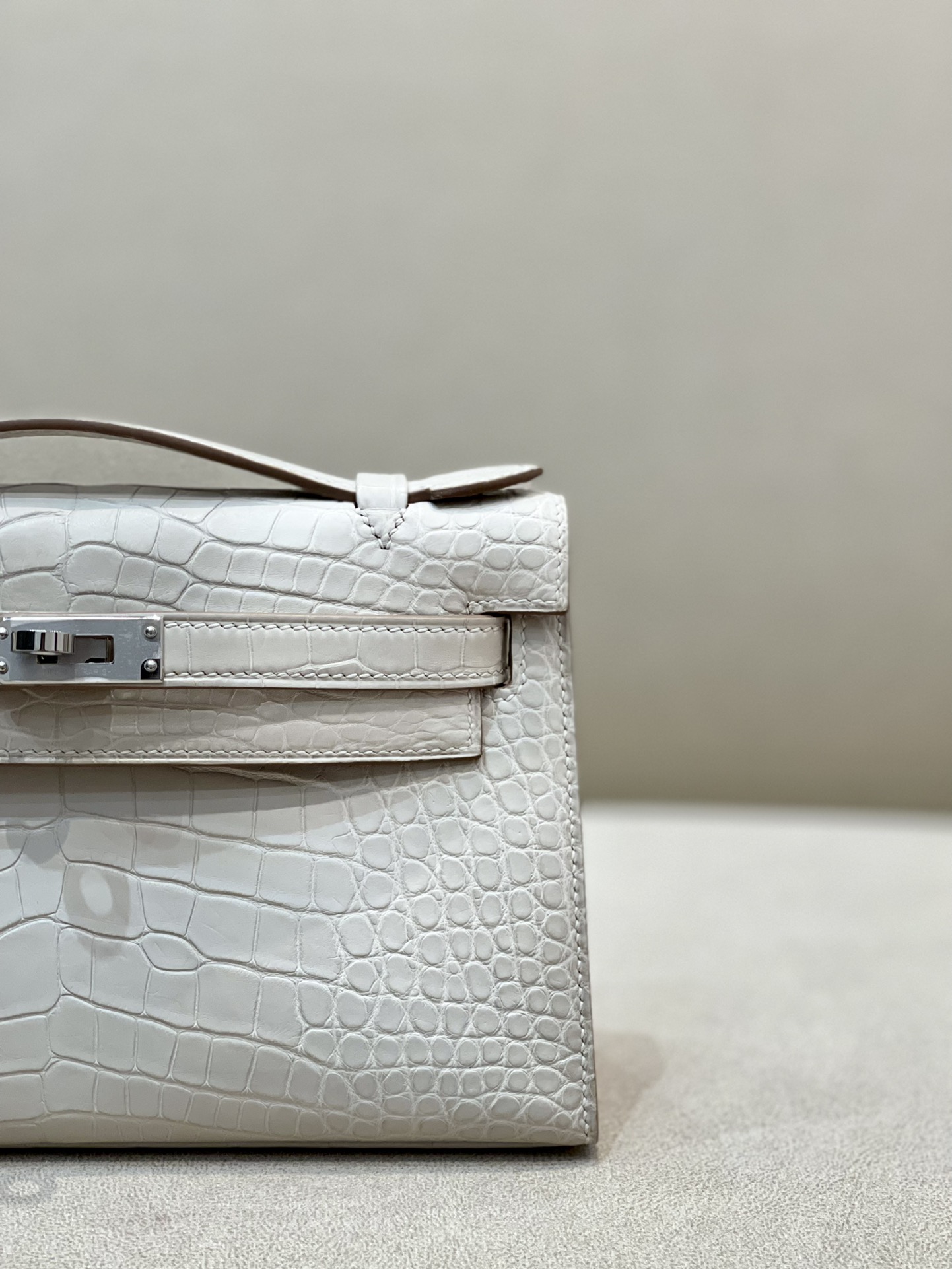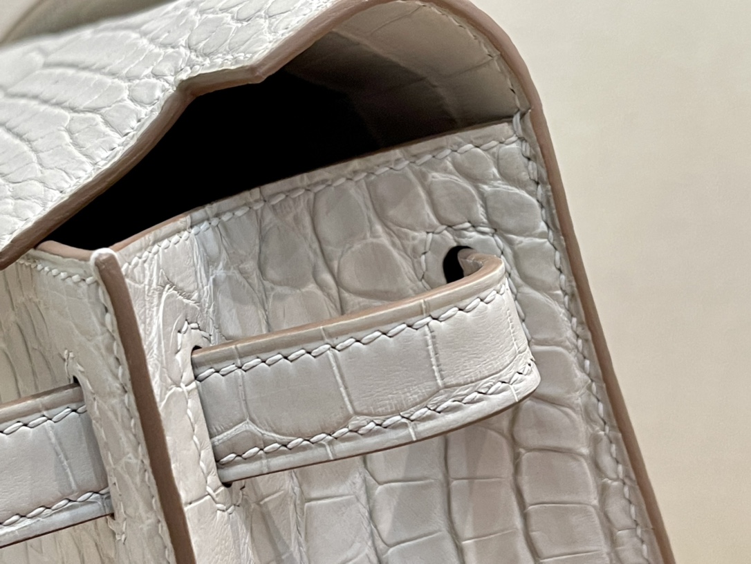 Kelly Pochette Alligator Gris Asphalte (M8) Palladium Hardware