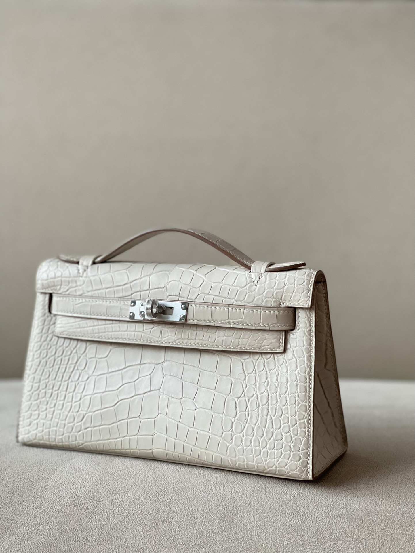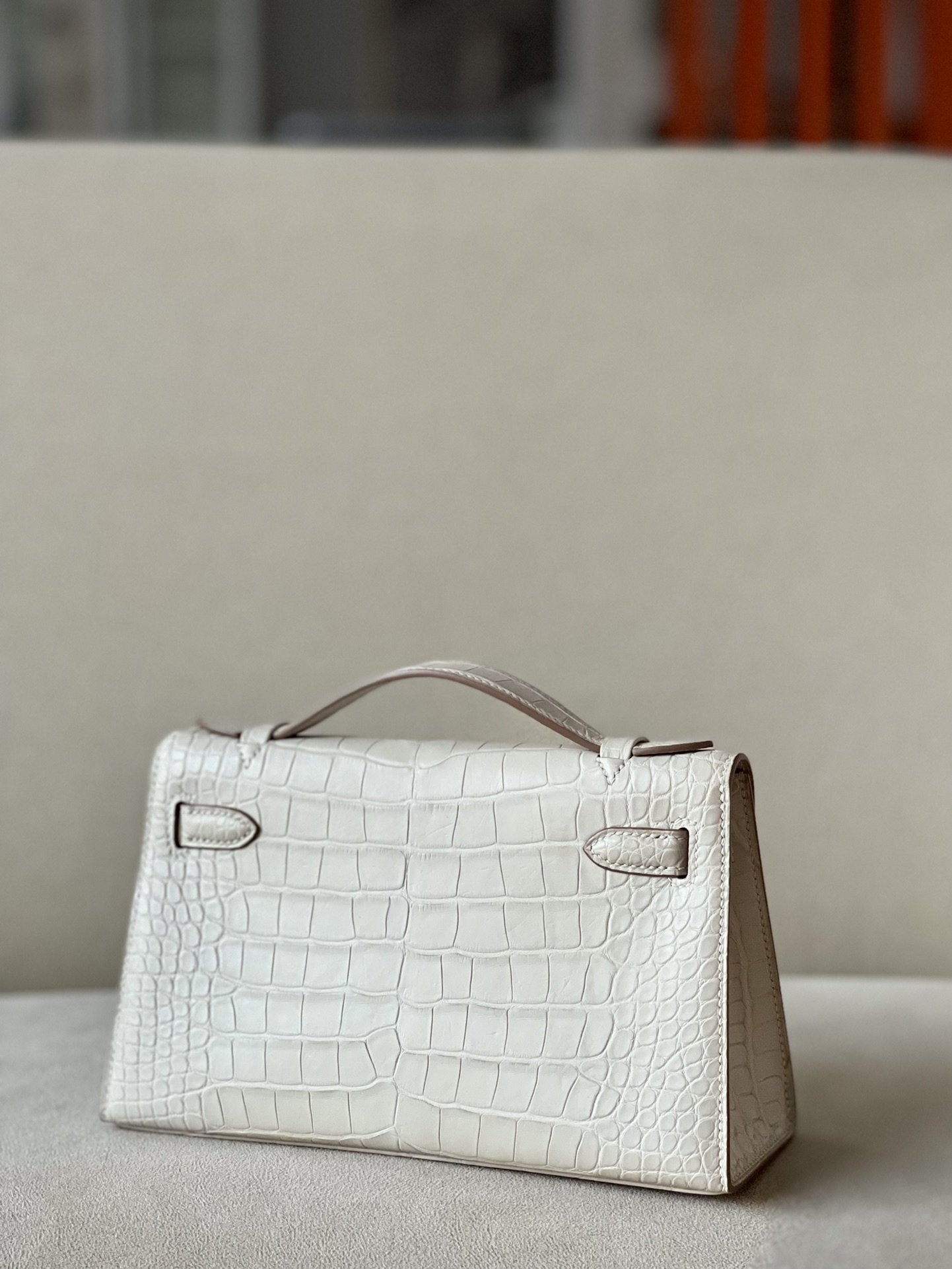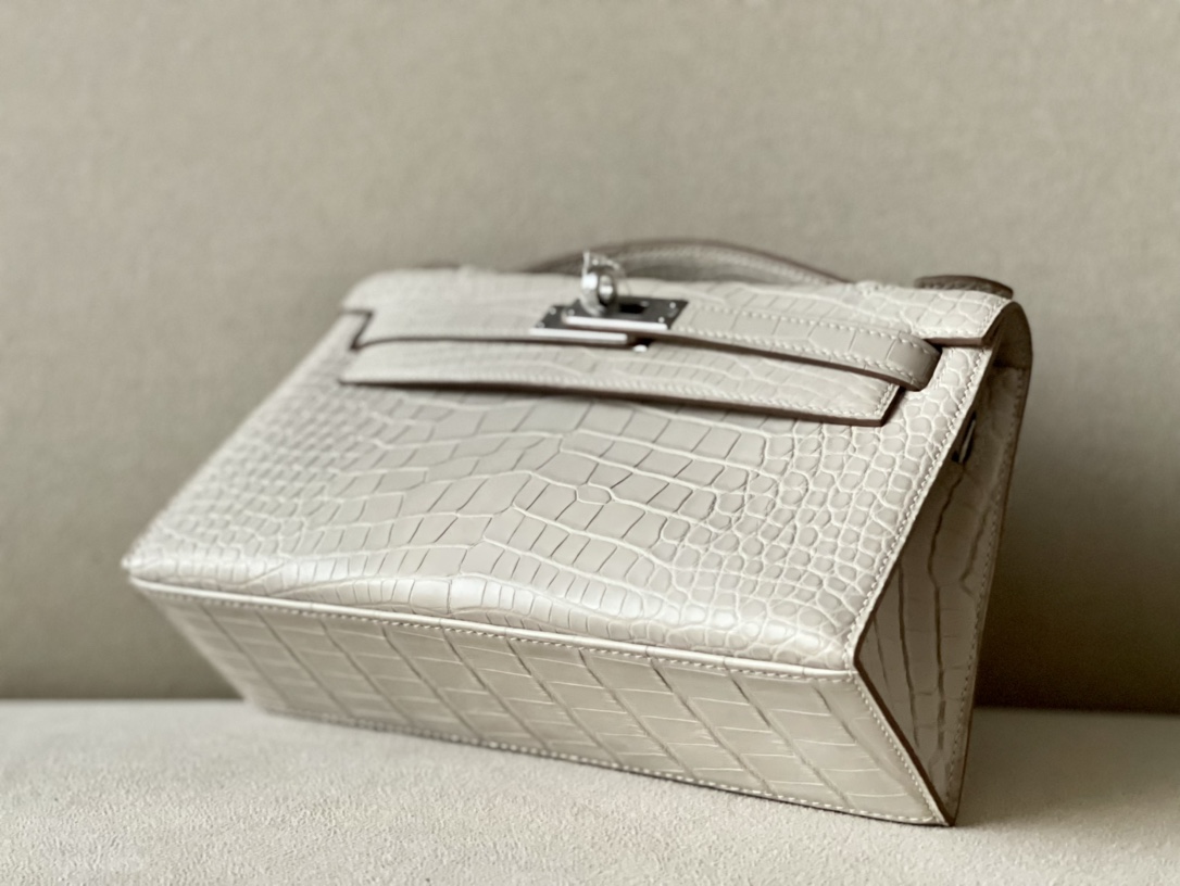 Kelly Pochette Alligator Gris Asphalte (M8) Palladium Hardware