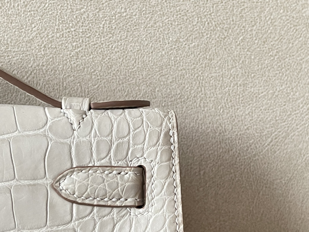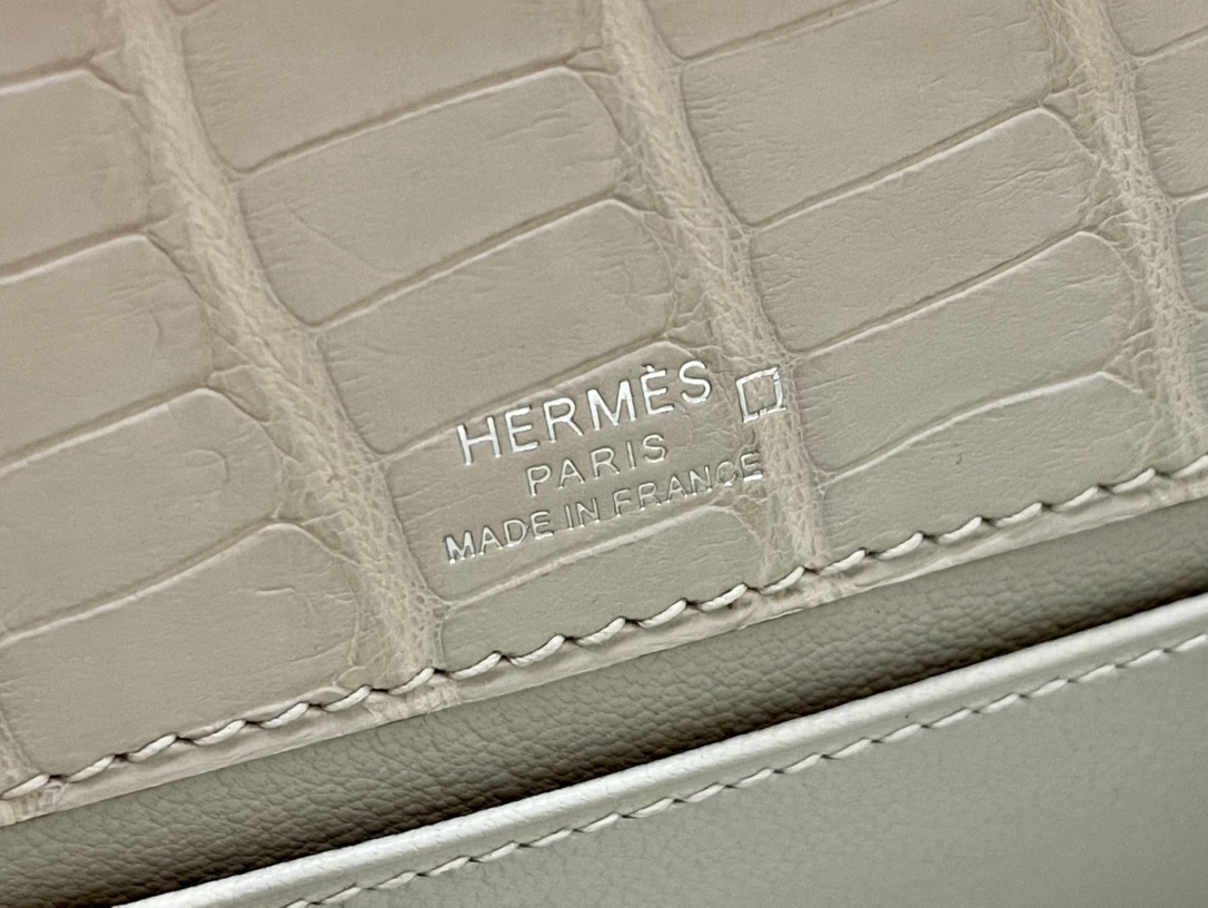 Kelly Pochette Alligator Beton (8L) Gold Hardware