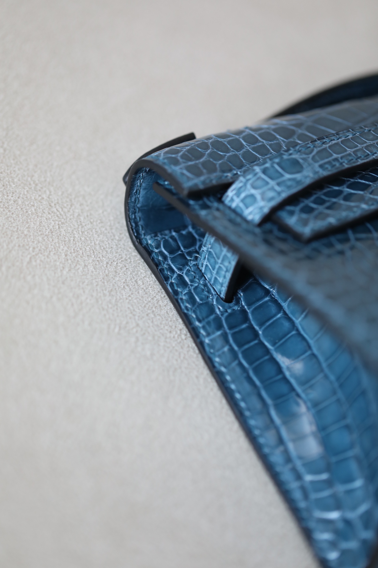Kelly Pochette Alligator Ficelle (17) Palladium Hardware