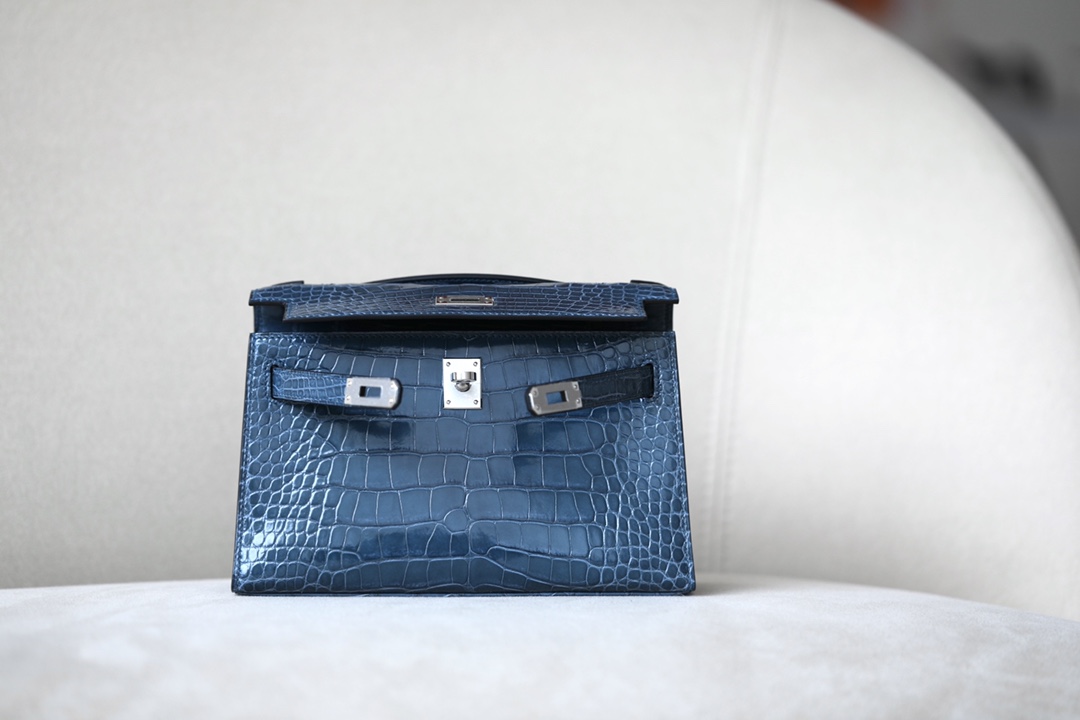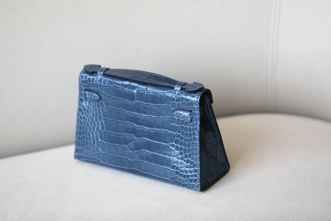 Kelly Pochette Alligator Vert Fonce (67) Palladium Hardware