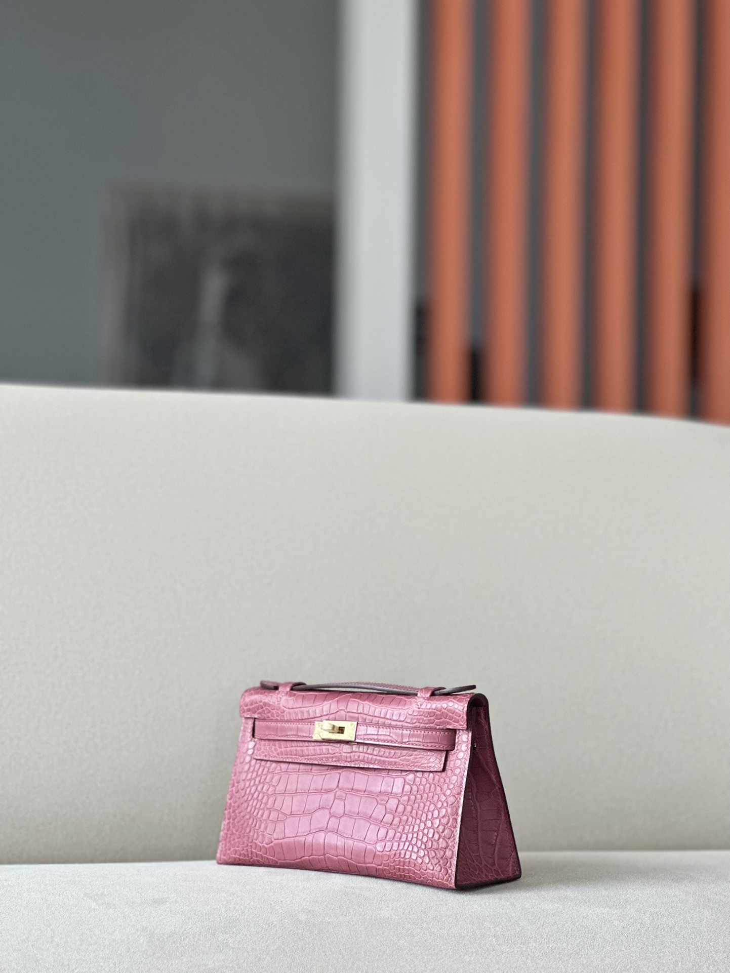 Kelly Pochette Alligator Graphite (88) Palladium Hardware