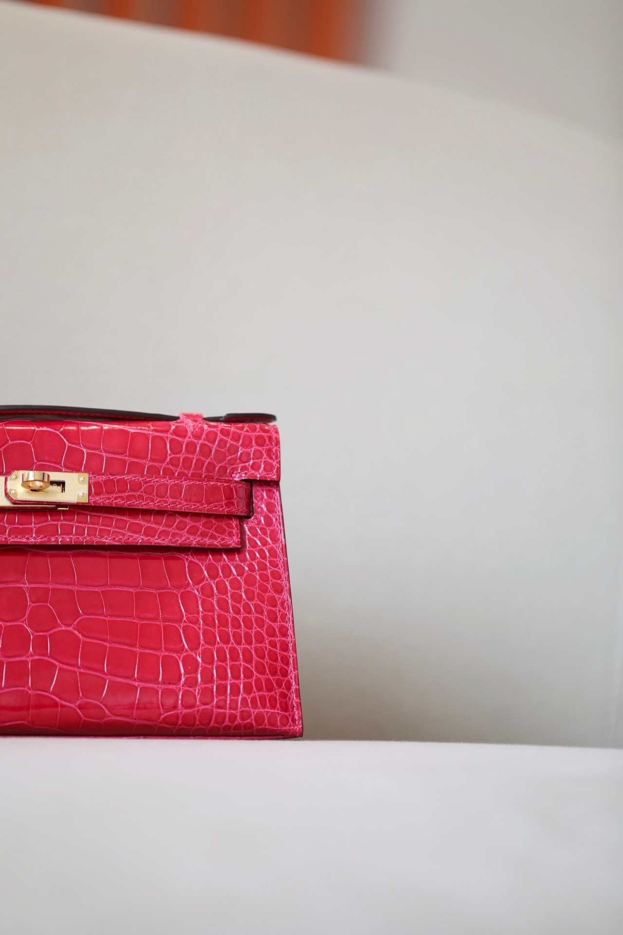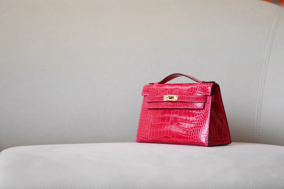 Kelly Pochette Alligator Jaune Amber (9D) Gold Hardware
