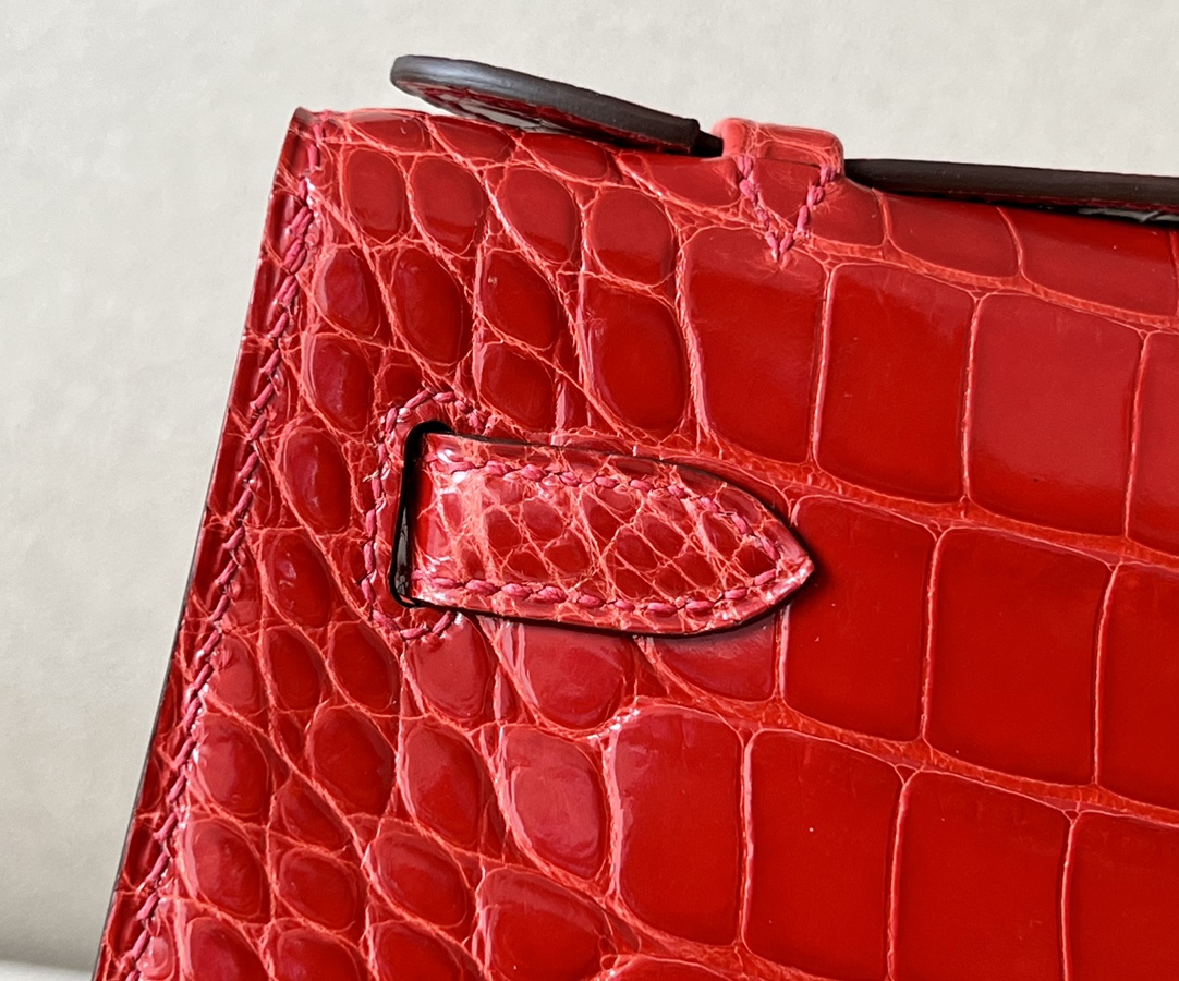 Kelly Pochette Alligator Braise (95) Palladium Hardware
