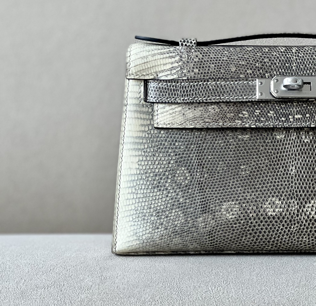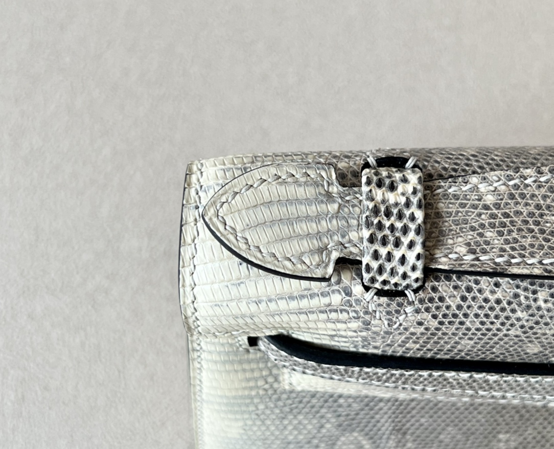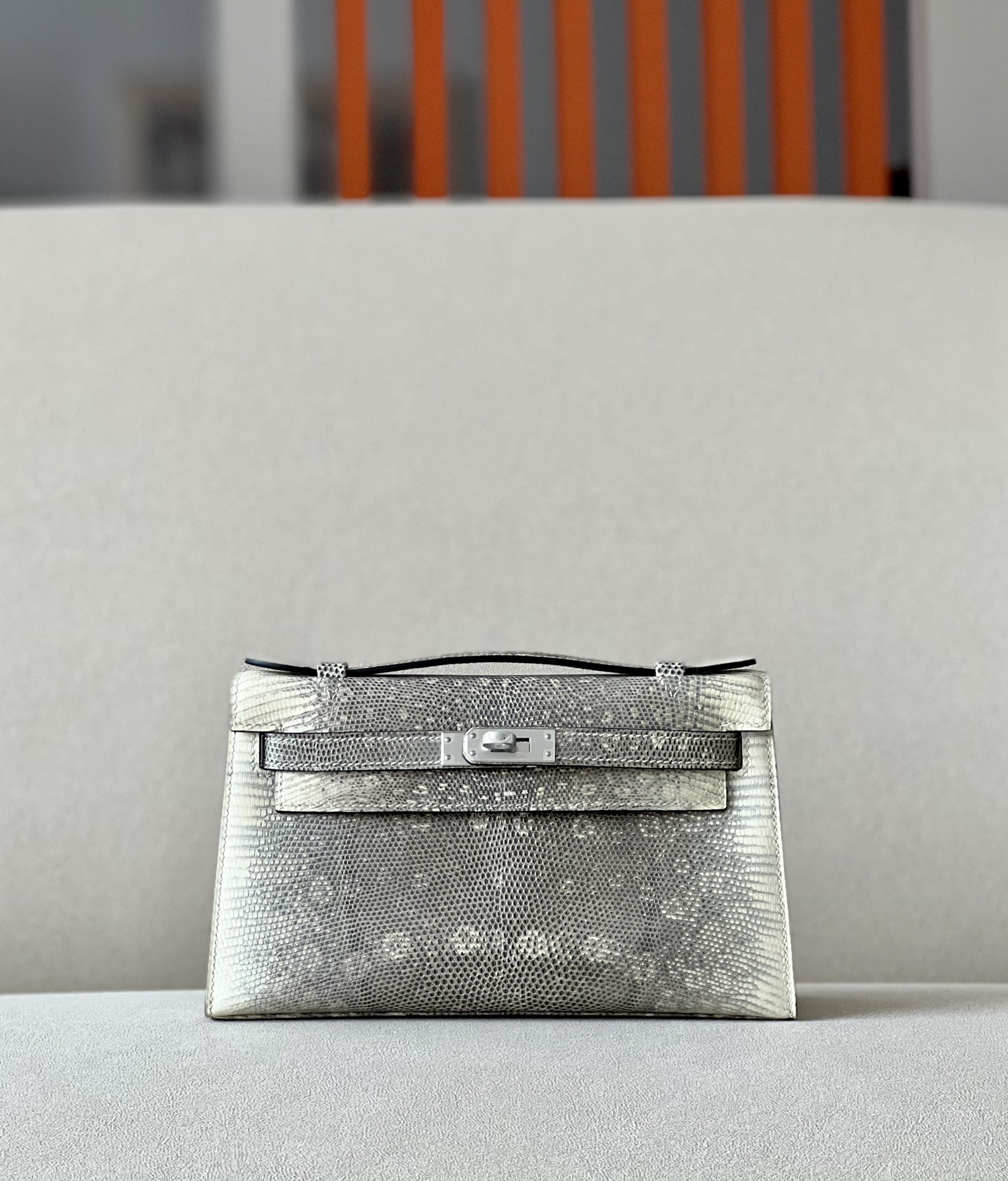 Kelly Pochette Lizard Vert Aris (66) Palladium Hardware