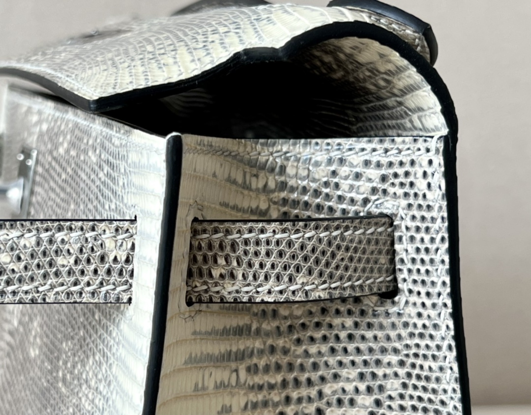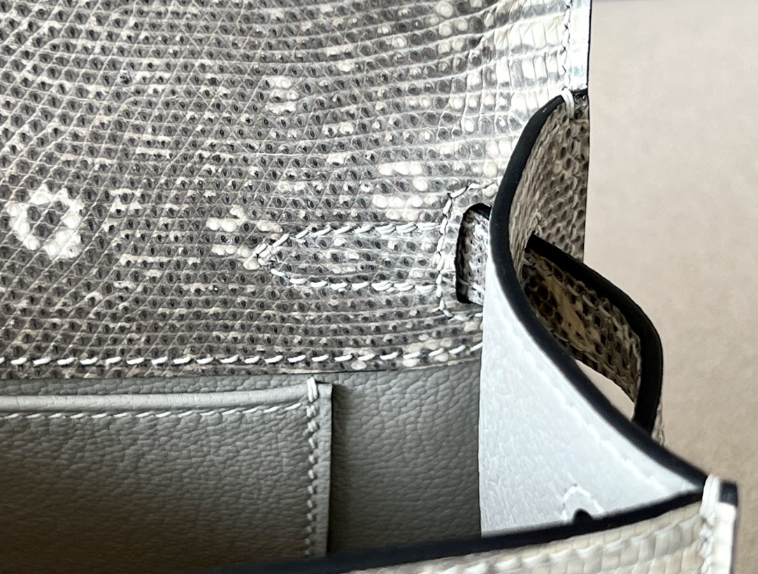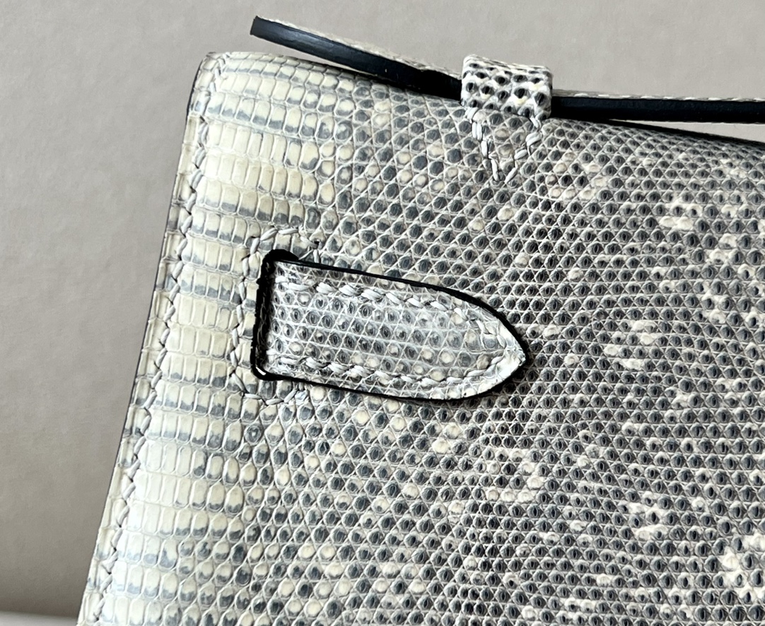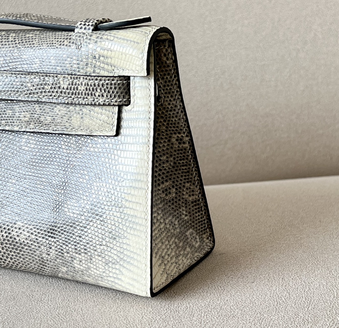 Kelly Pochette Lizard Vert Aris (66) Palladium Hardware
