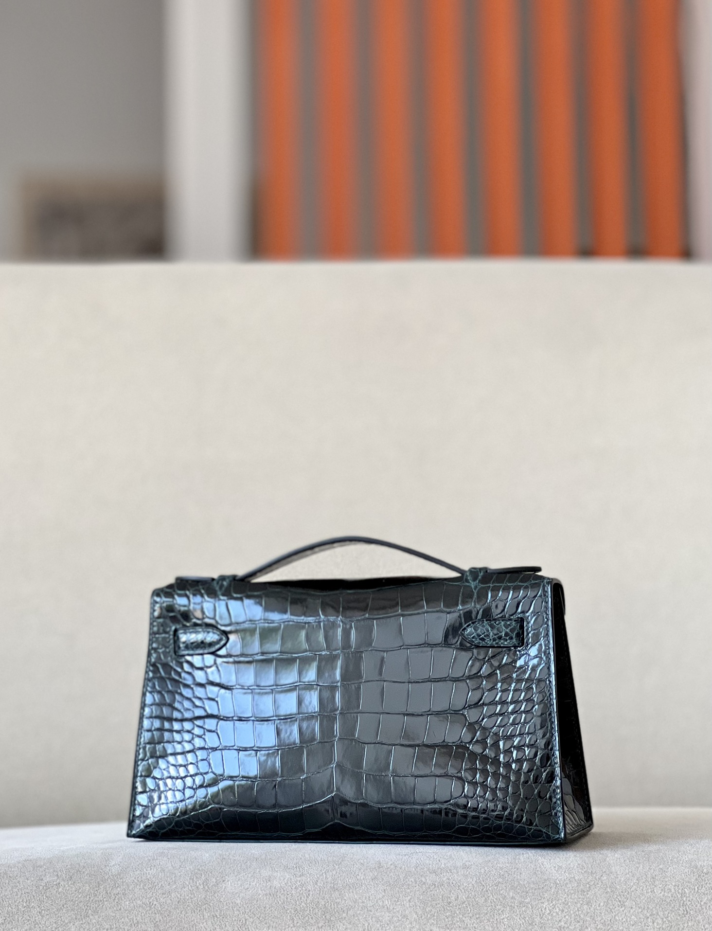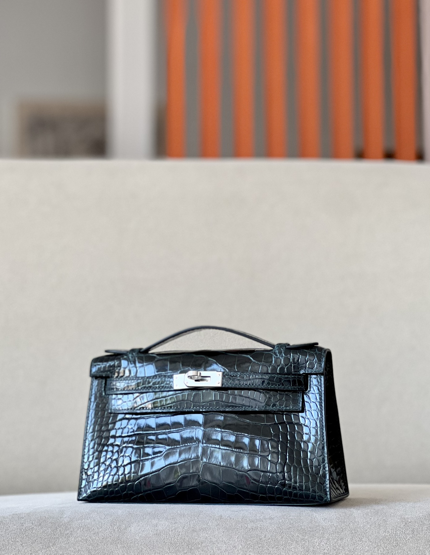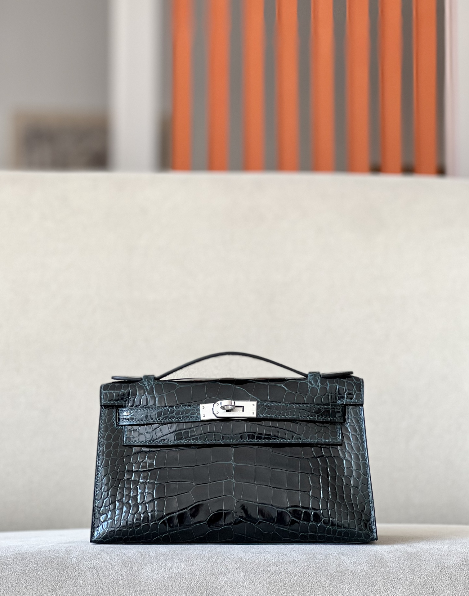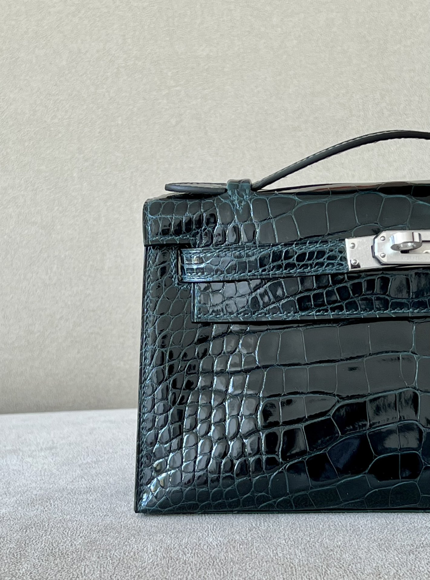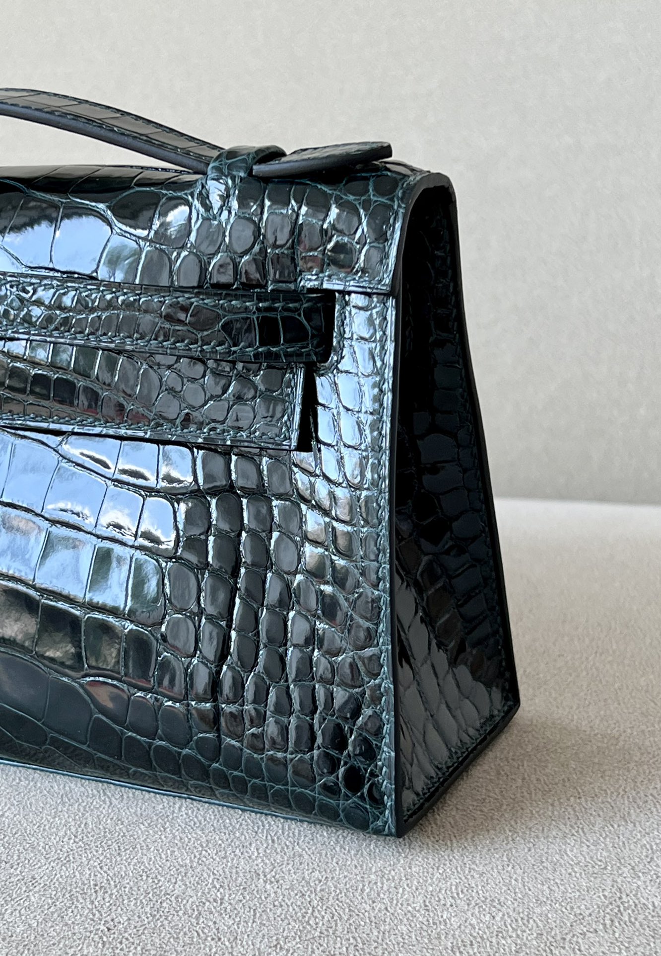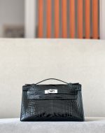 Kelly Pochette Alligator Ficelle (17) Palladium Hardware