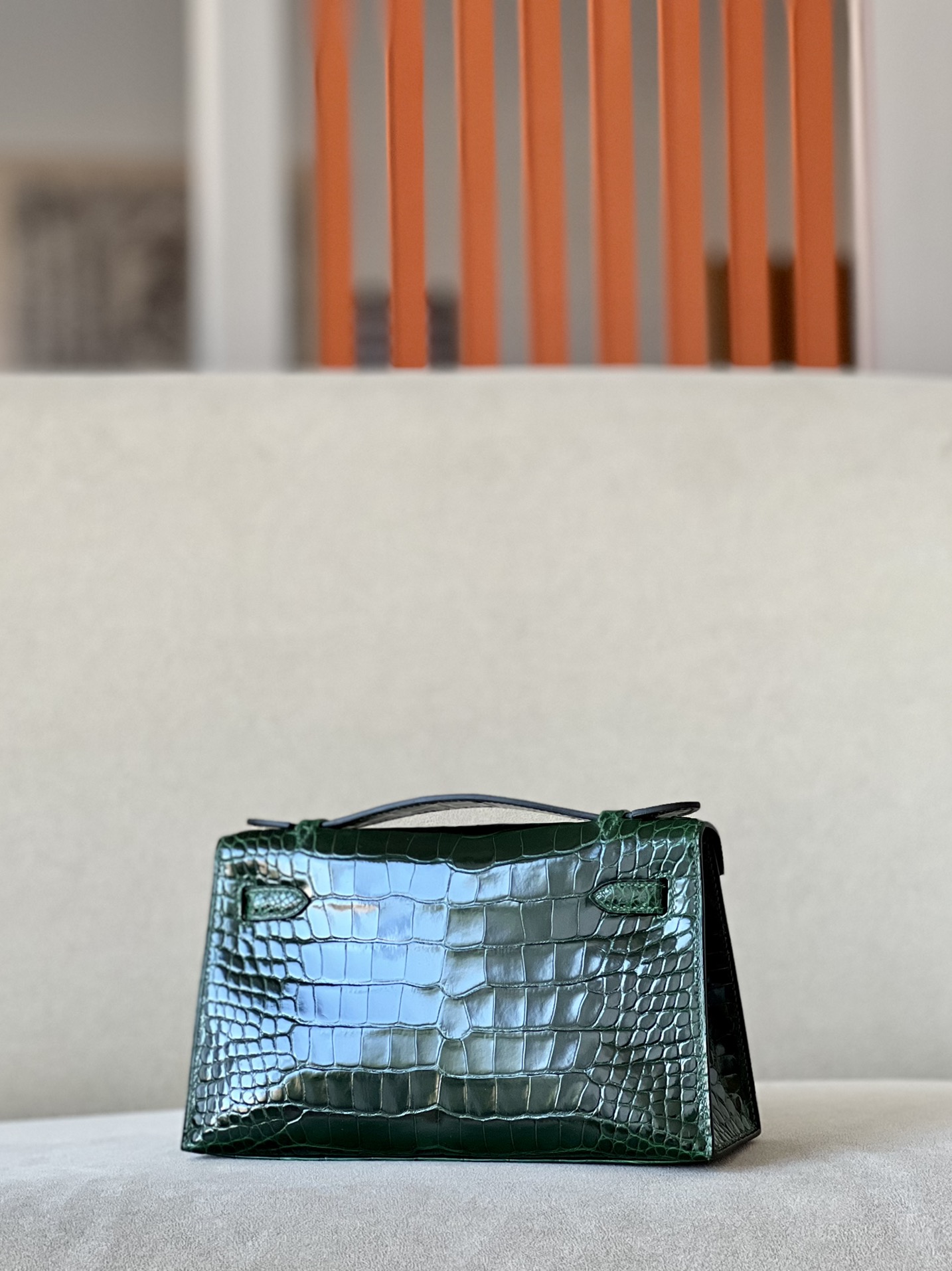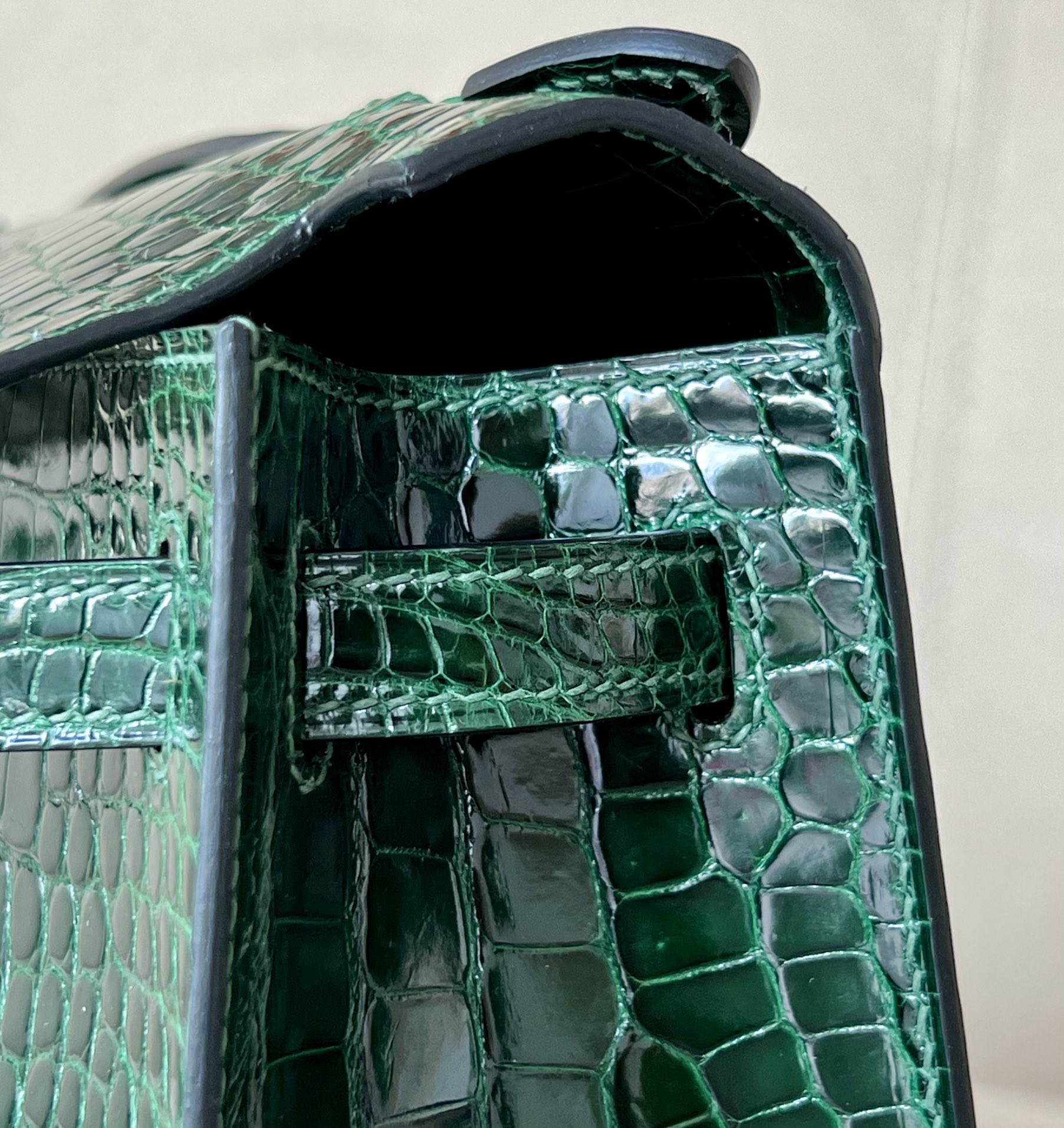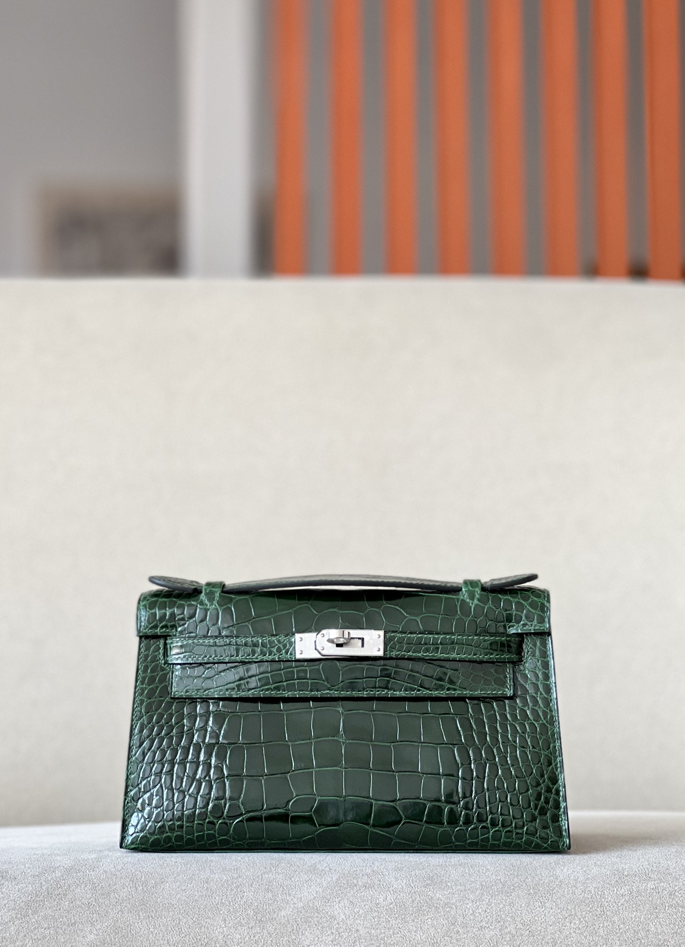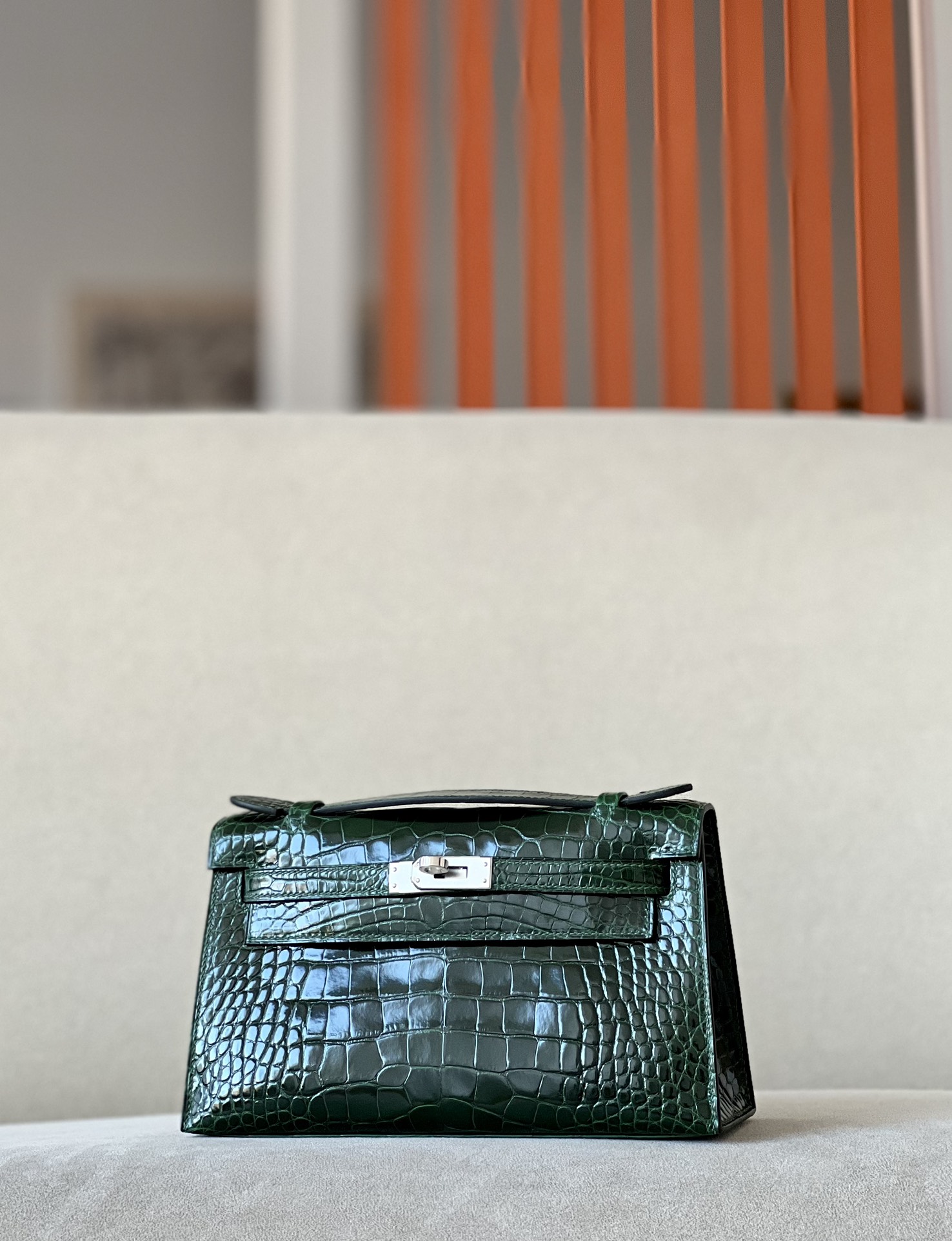 Kelly Pochette Alligator Blue Jean (75) Palladium Hardware