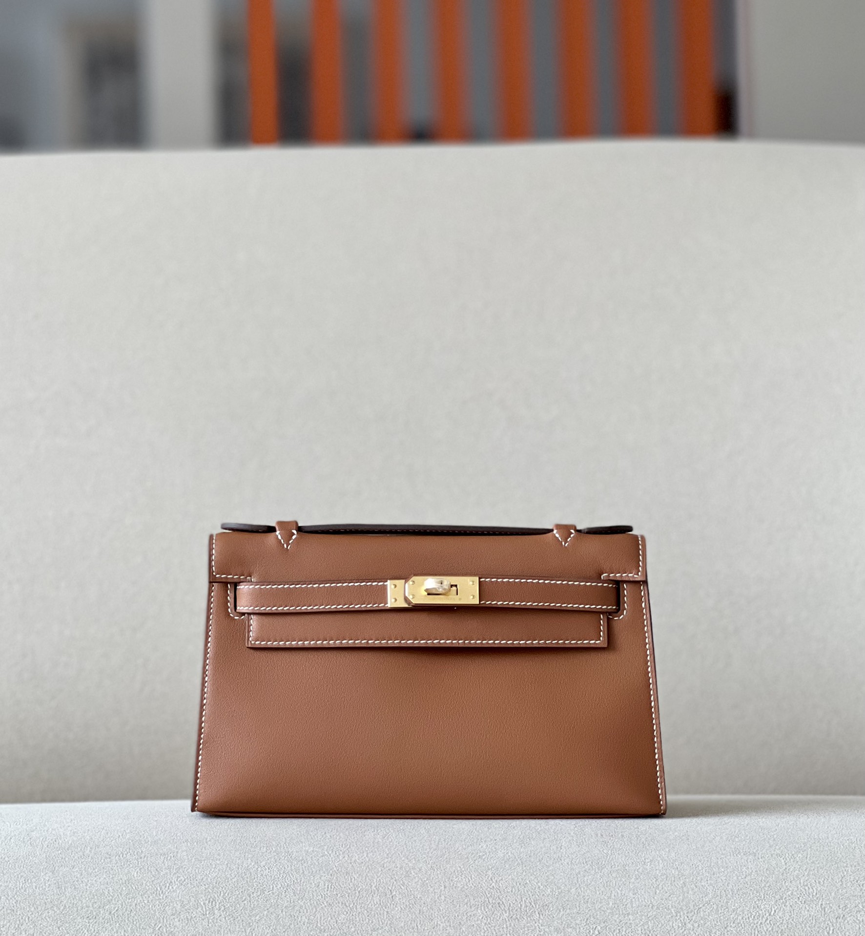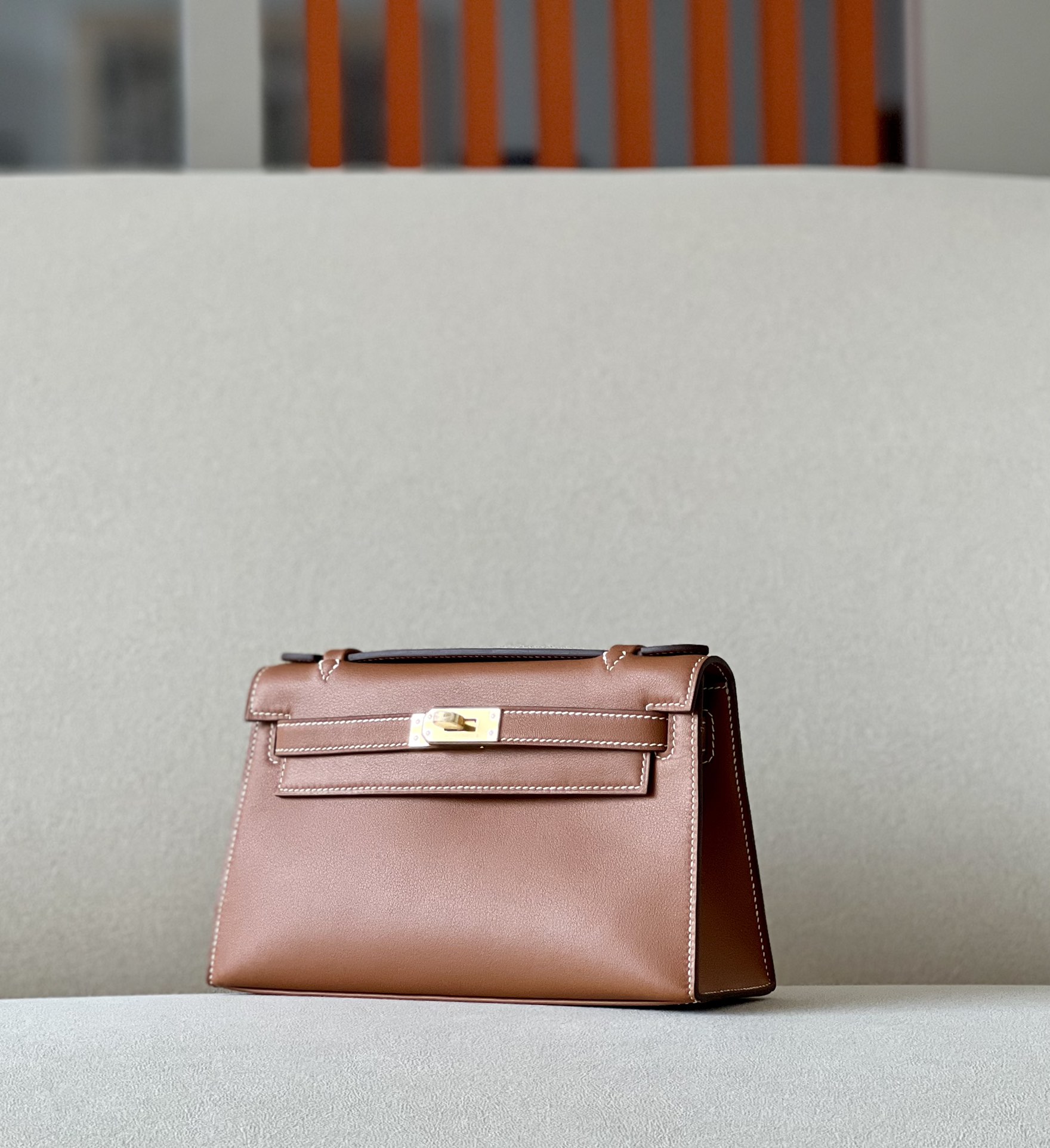 Kelly Pochette Swift Biscuit (4B) Palladium Hardware