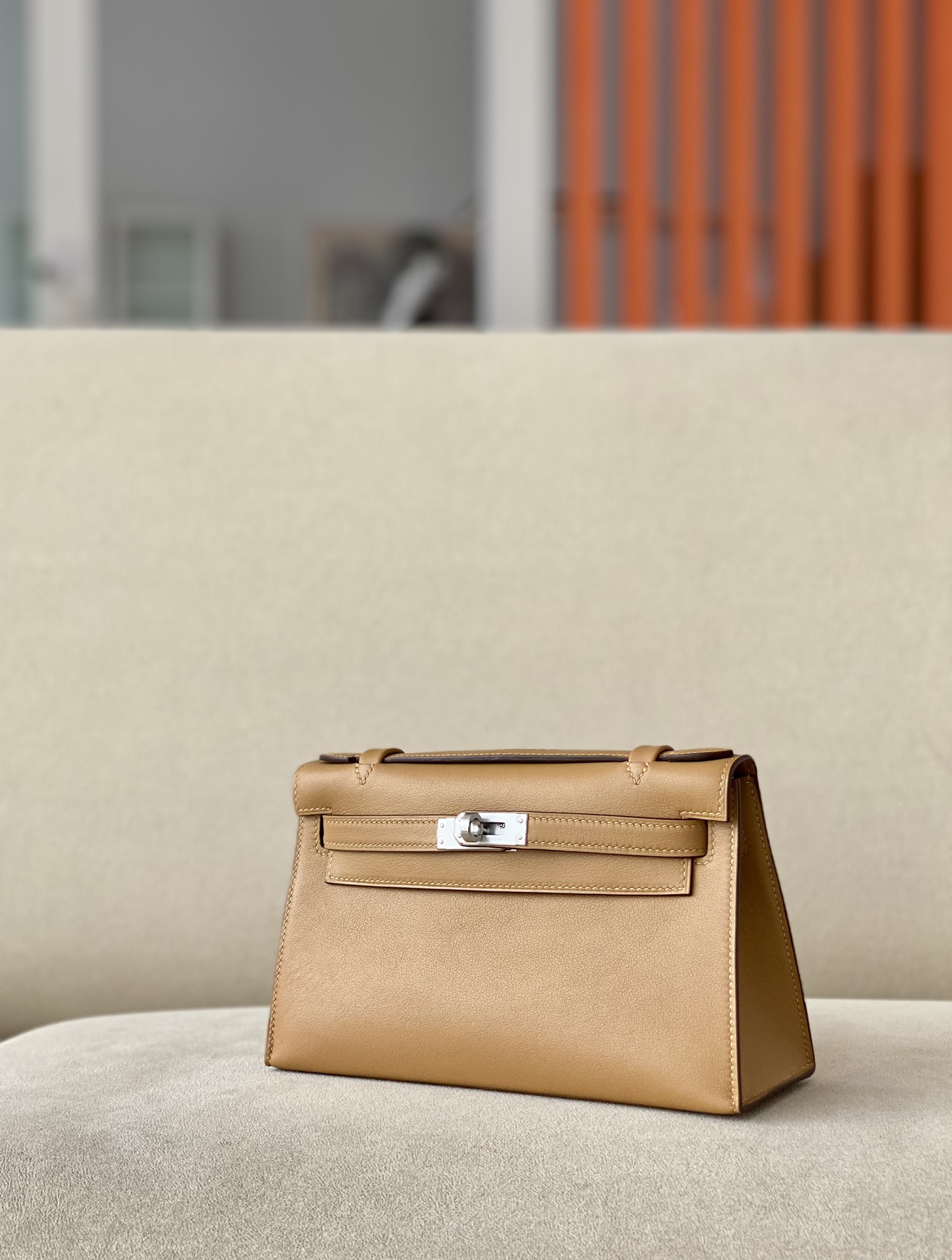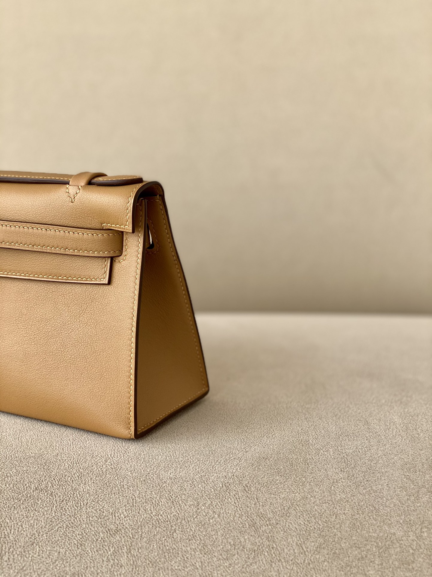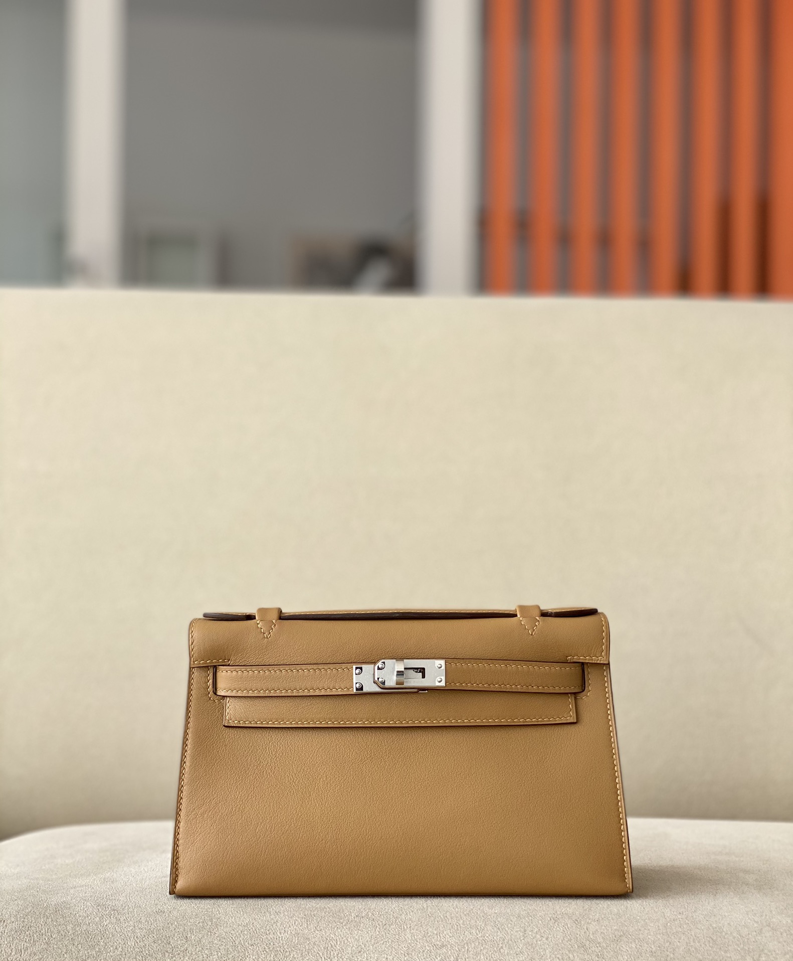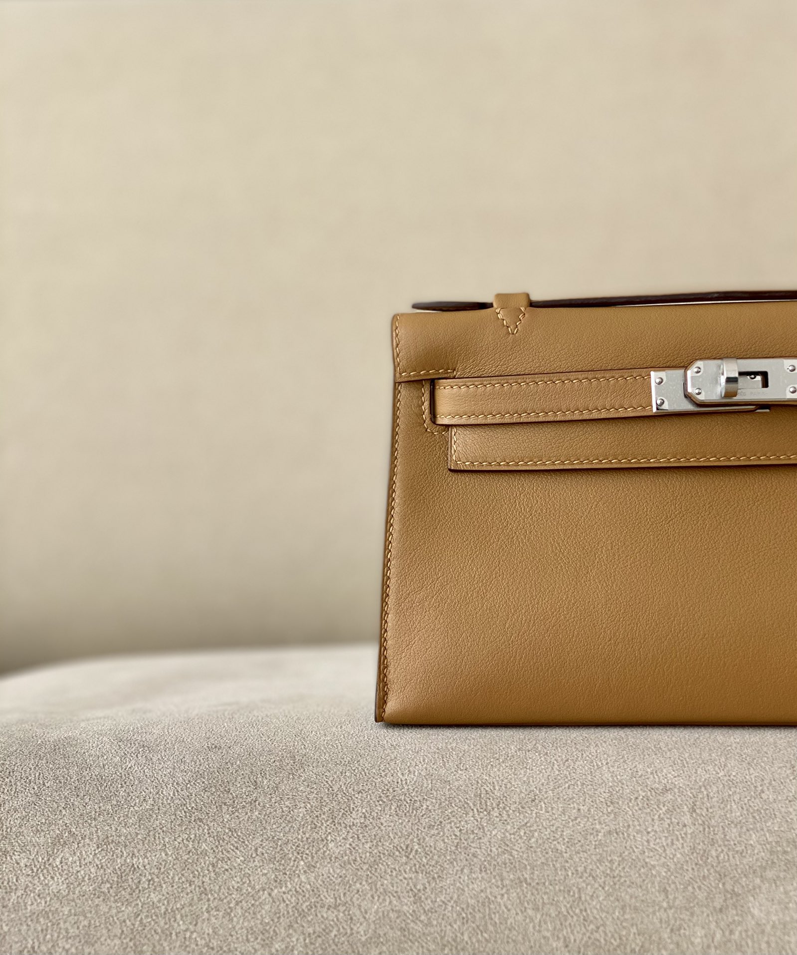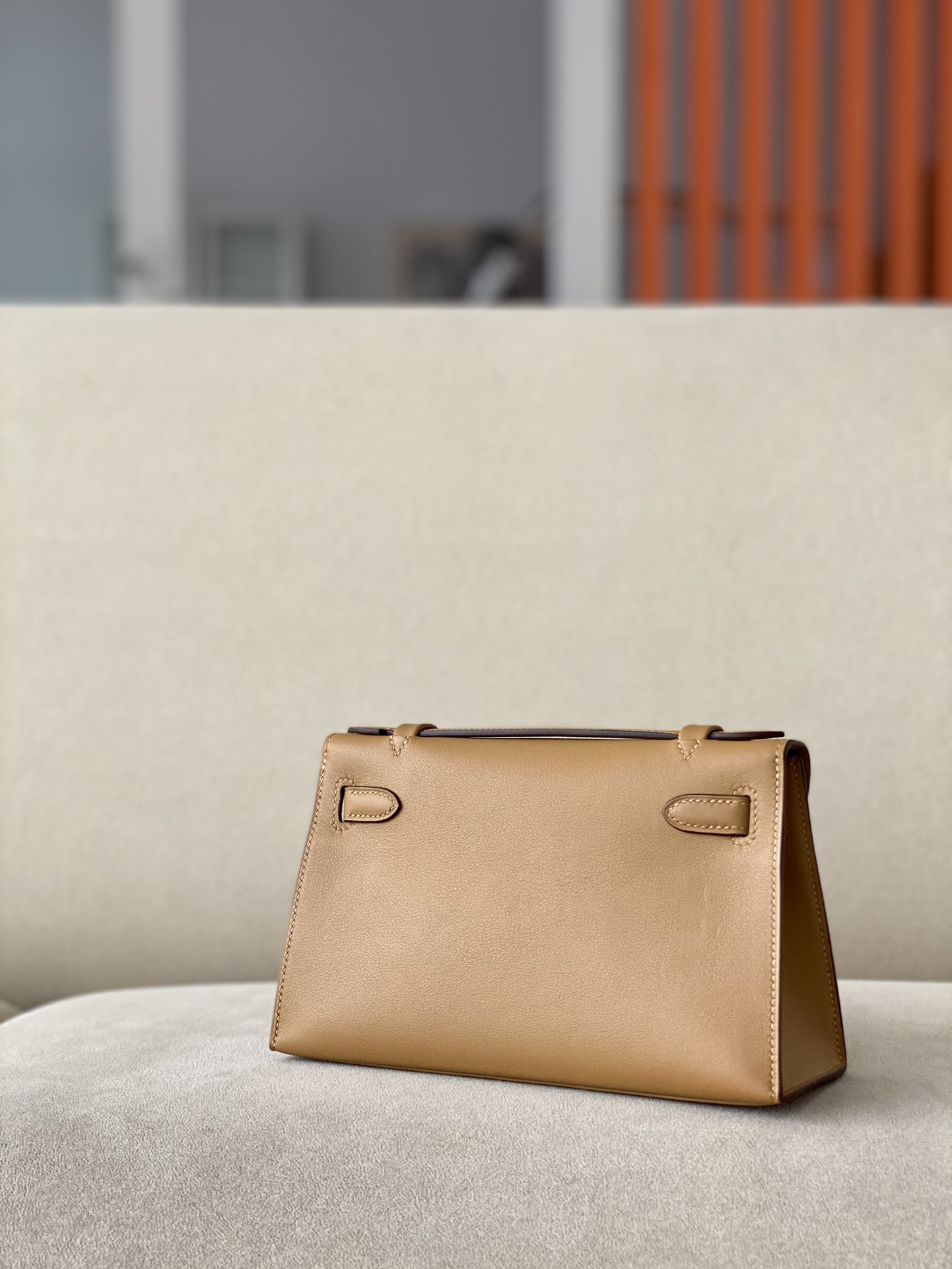 Kelly Pochette Swift Biscuit (4B) Gold Hardware