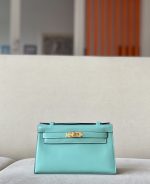 Kelly Pochette Swift Blue Atoll (3P) Gold Hardware