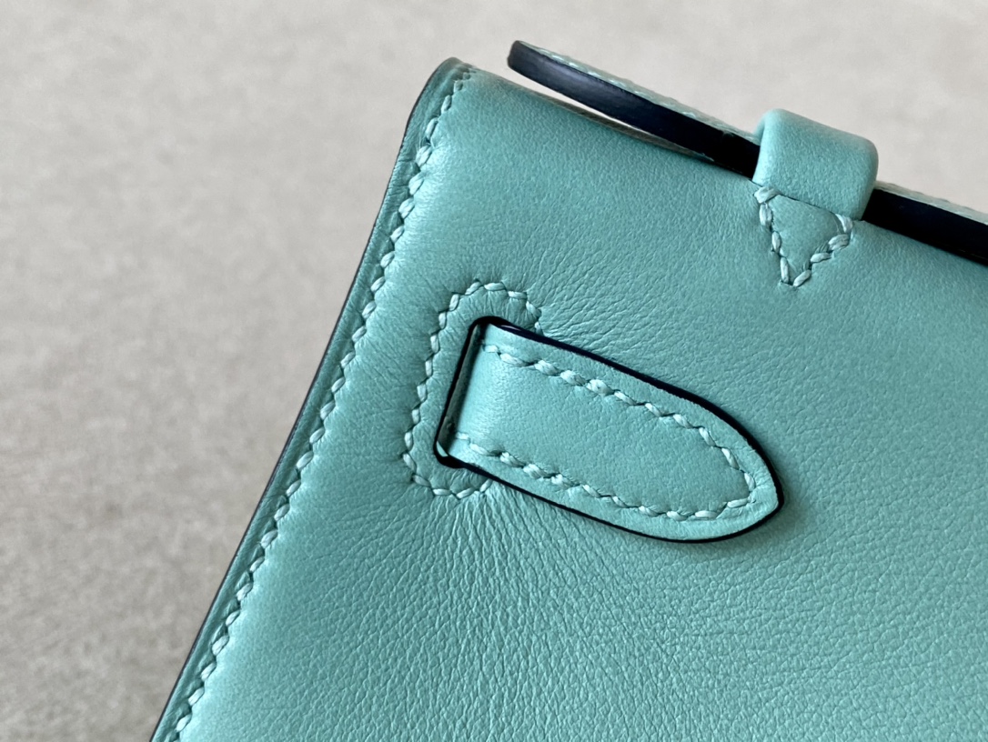 Kelly Pochette Swift Vert Bosphore (W0) Palladium Hardware