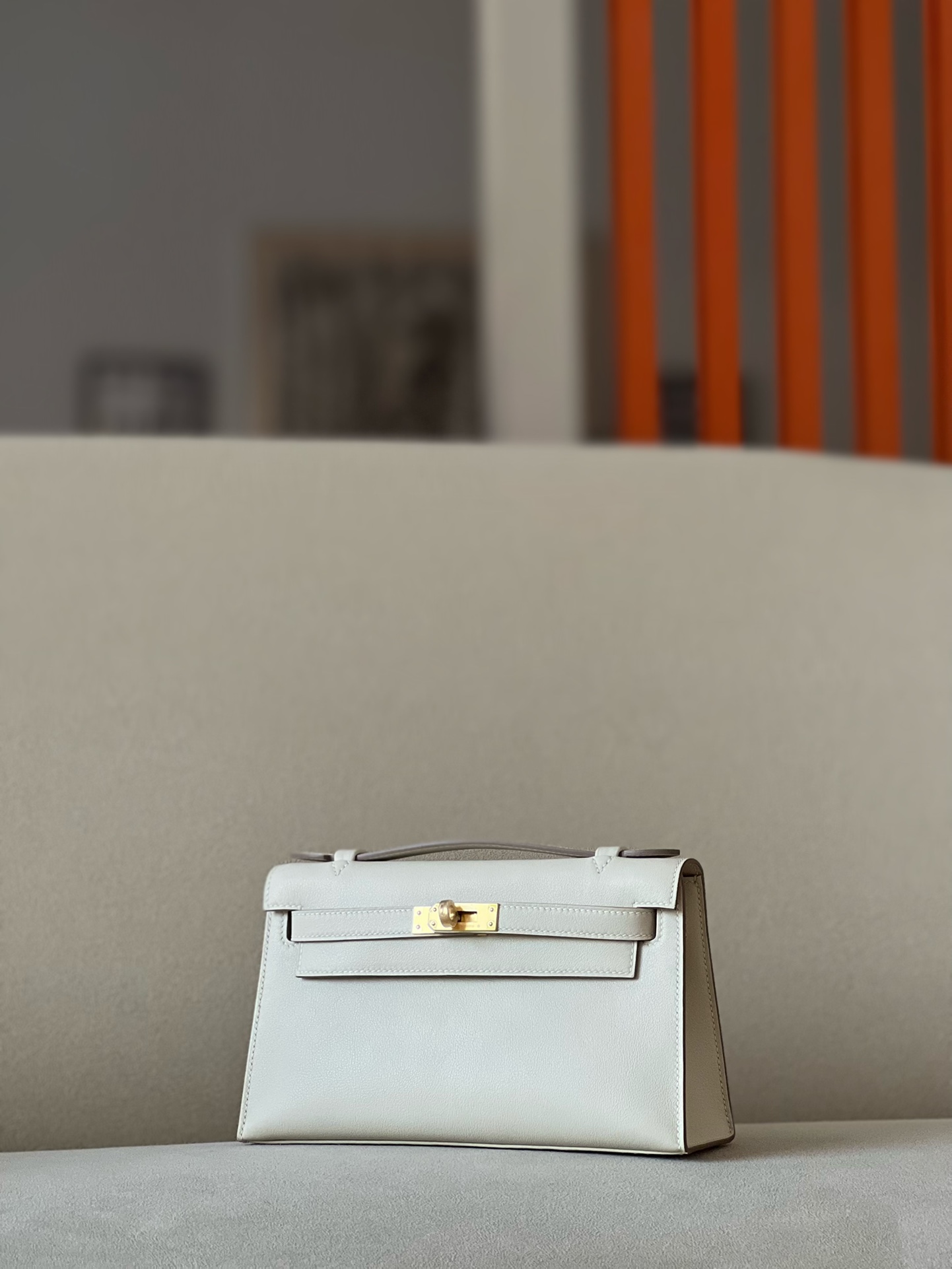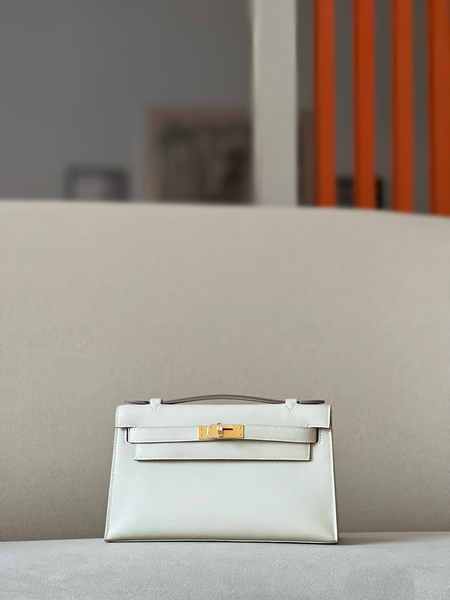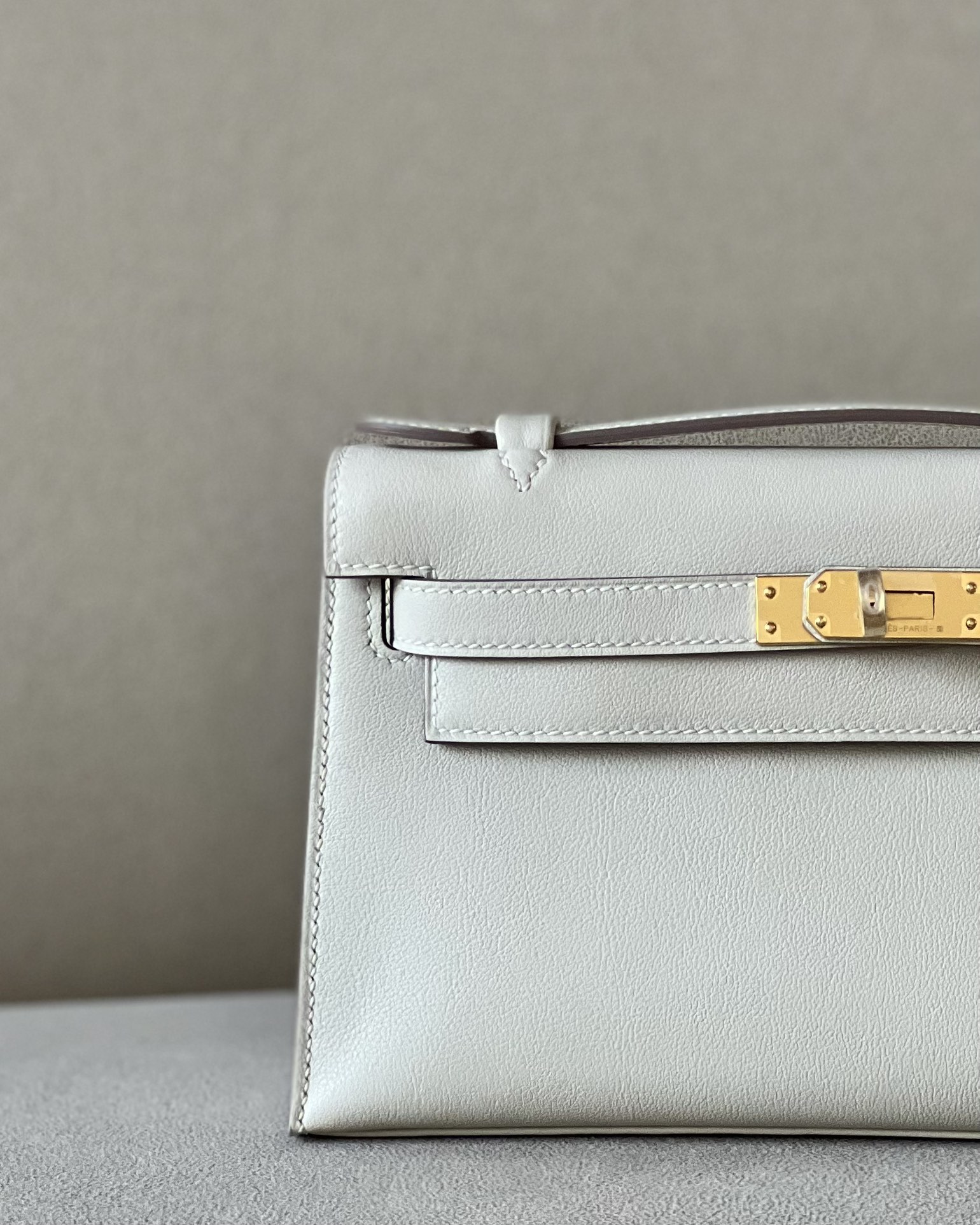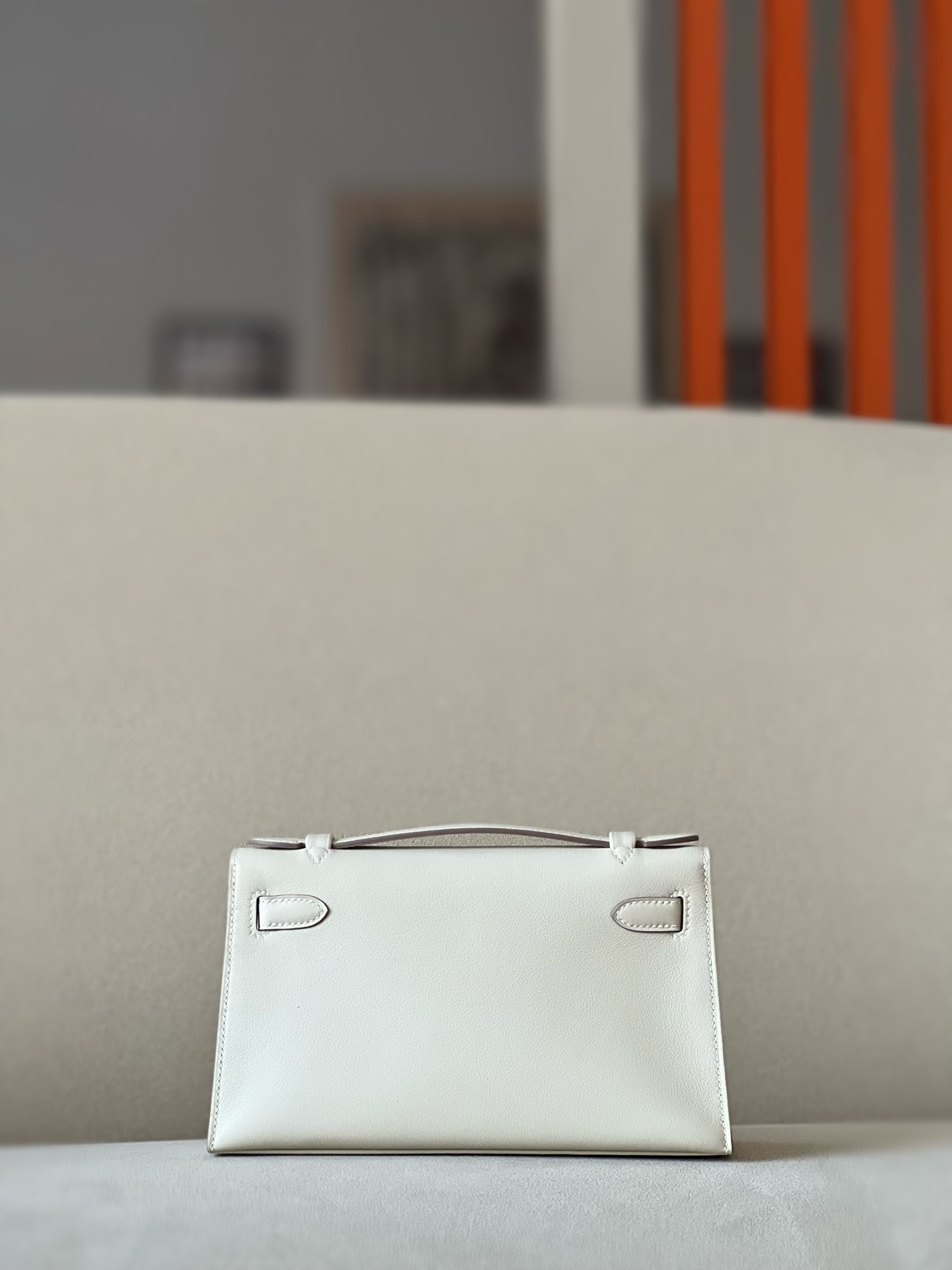 Kelly Pochette Swift Craie (10) Palladium Hardware