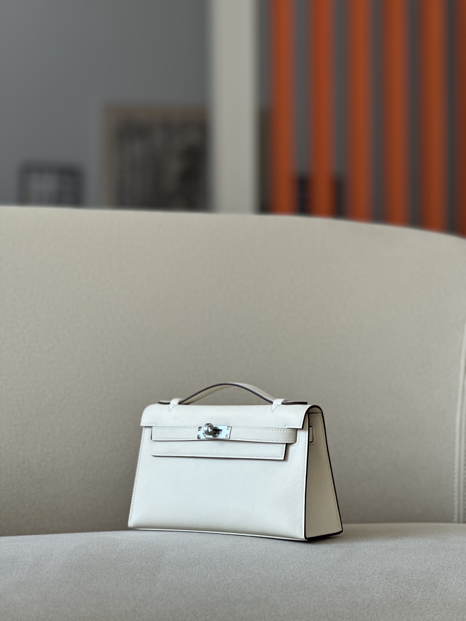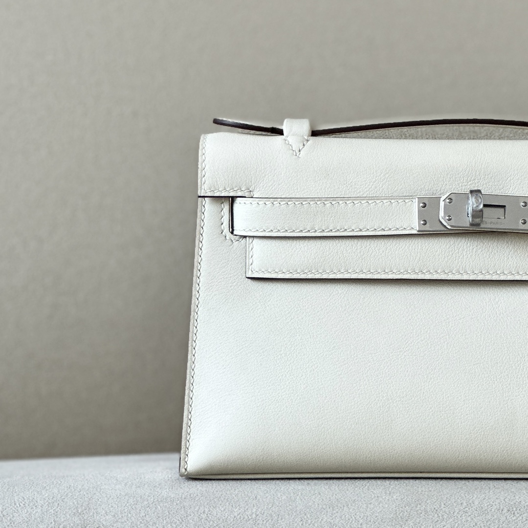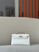 Kelly Pochette Swift Rouge H (55) Palladium Hardware