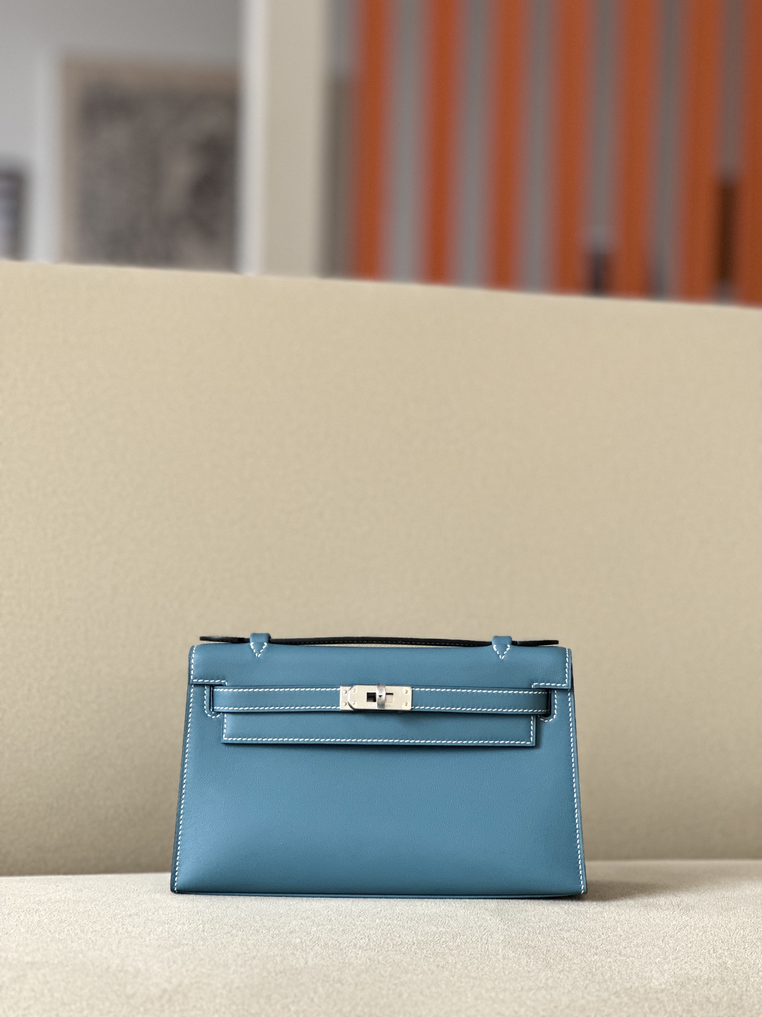 Kelly Pochette Swift New Bleu Jean (D2) Gold Hardware