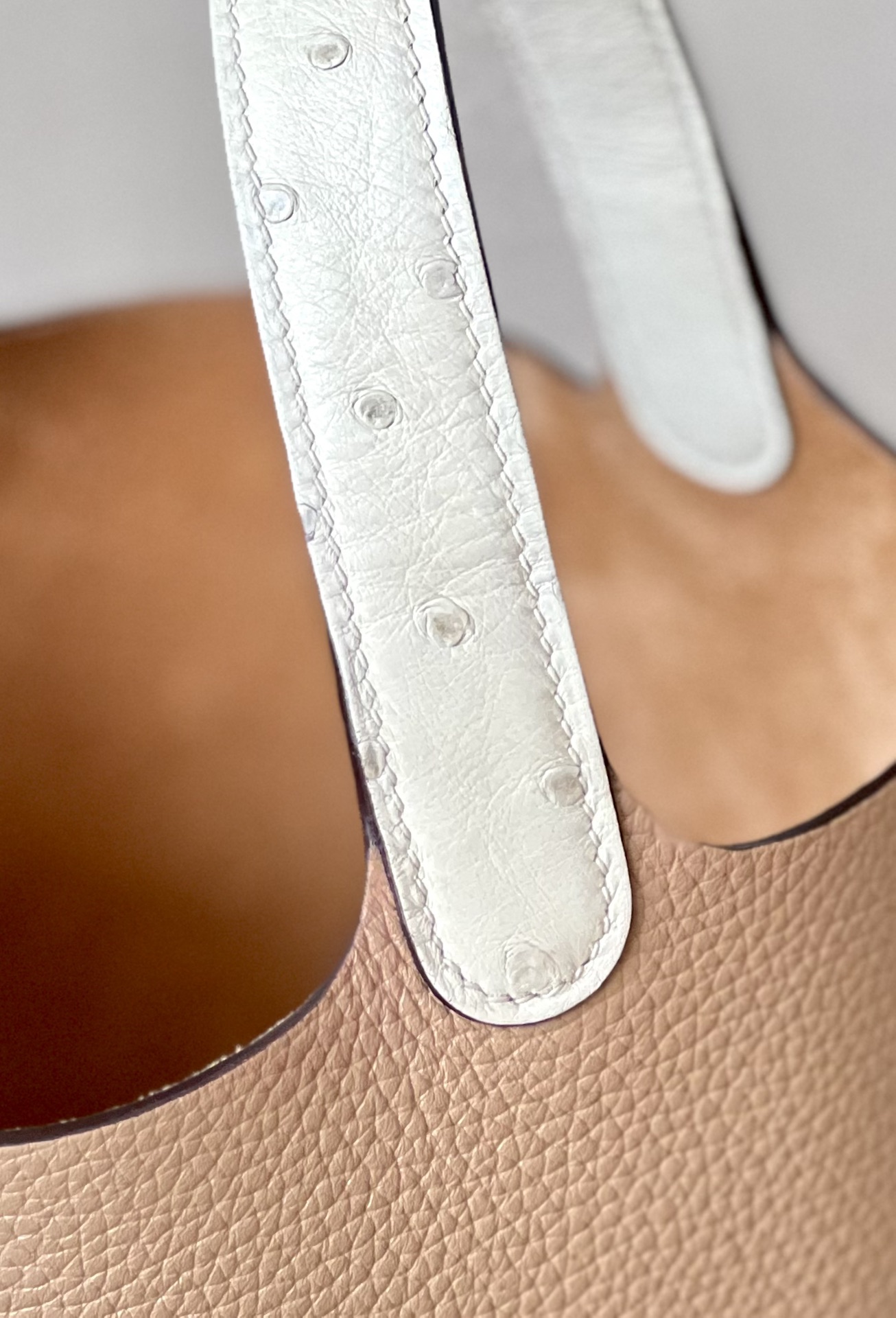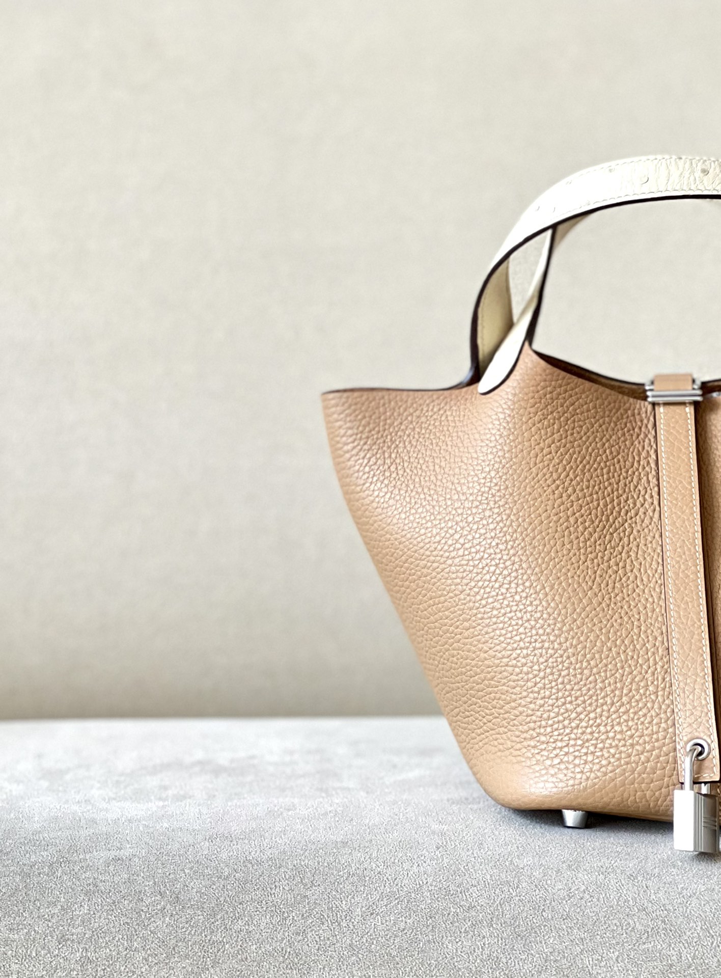 Picotin Lock 18 Clemence and Ostrich Gris Meyer(0L) and Vanille(Y1) Palladium Hardware
