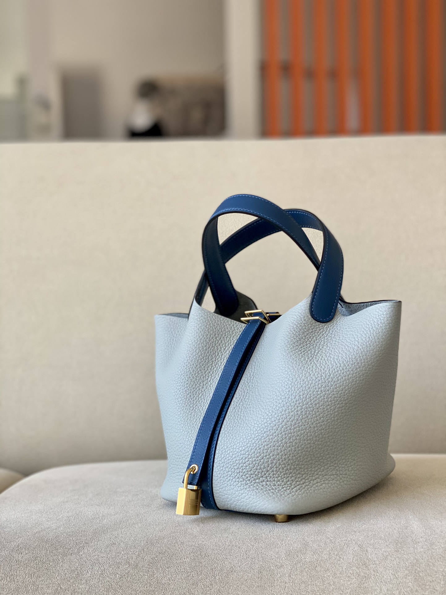 Picotin Lock HSS 18 Clemence Jaune Amber(9D) and Bleu Du Nord(P3)Palladium Hardware