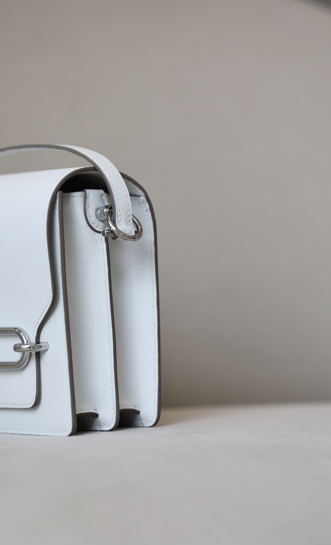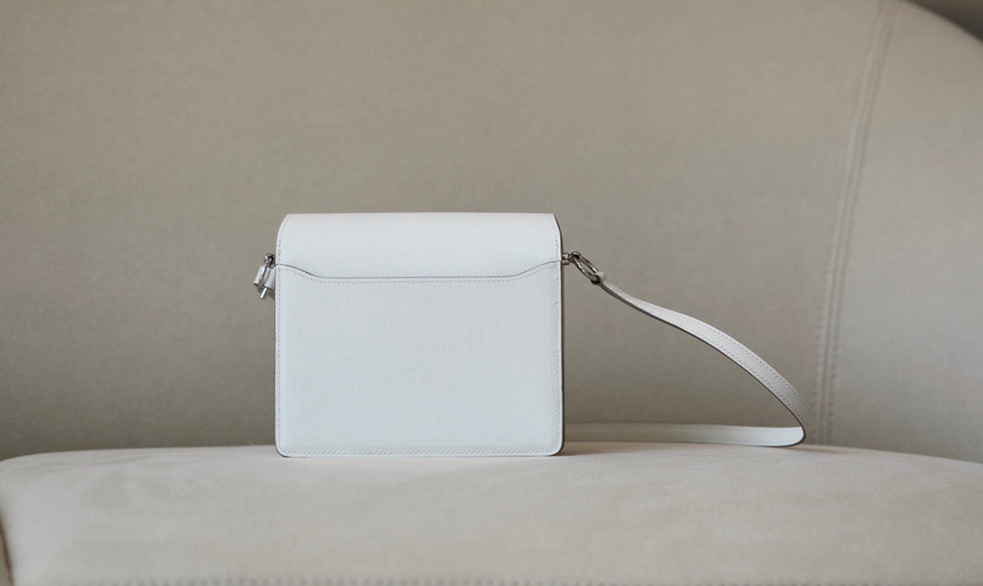 Includes ribbon, care booklet, dust bag, paper bag and box.