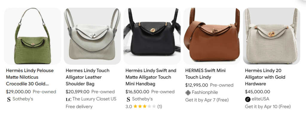 On the secondary market, the price of an Hermès Lindy can vary greatly depending on condition, size, and material.