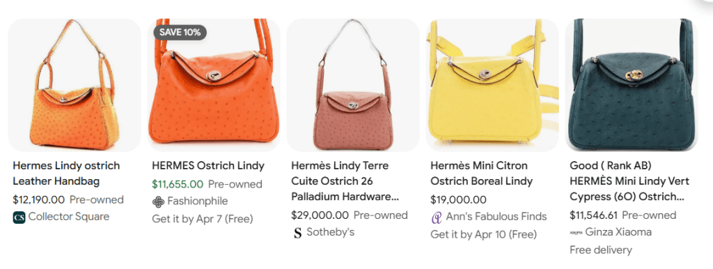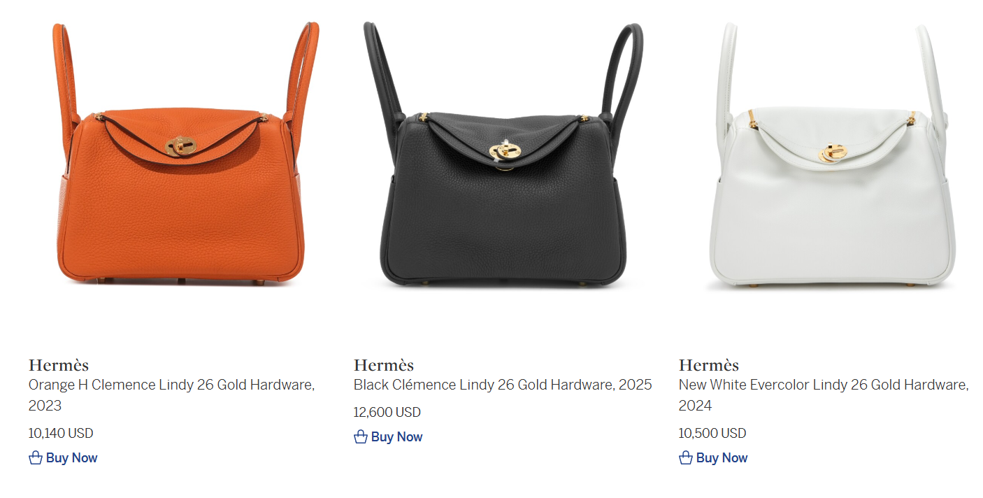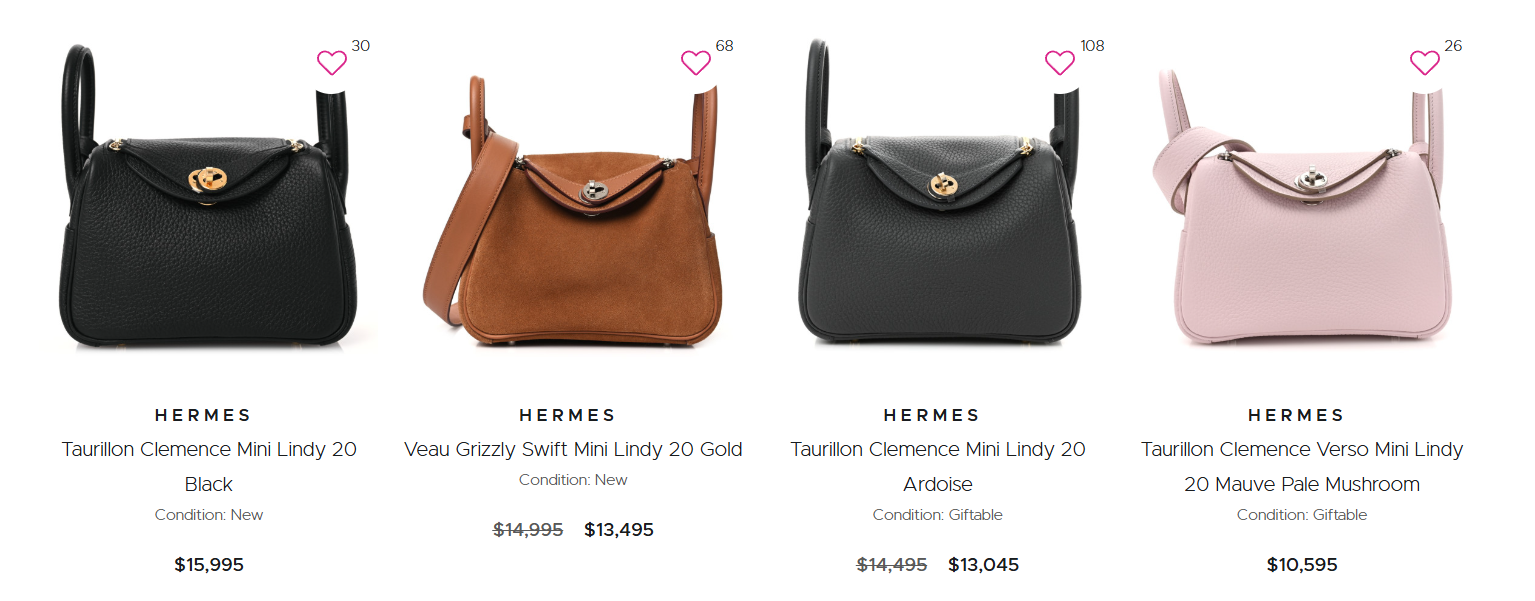 - Hermès Lindy 34 in Clemence leather is priced at $8,700