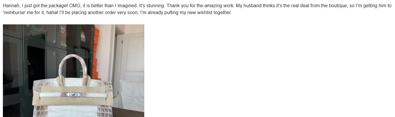 At Perfecthbags, our proudest moments aren’t finishing a piece. It’s the feedback we get from “seasoned players” who already own extensive top-tier collectsions. This shared appreciation for true beauty, even across great distances, is why we stay committed to our master-level craftsmanship.